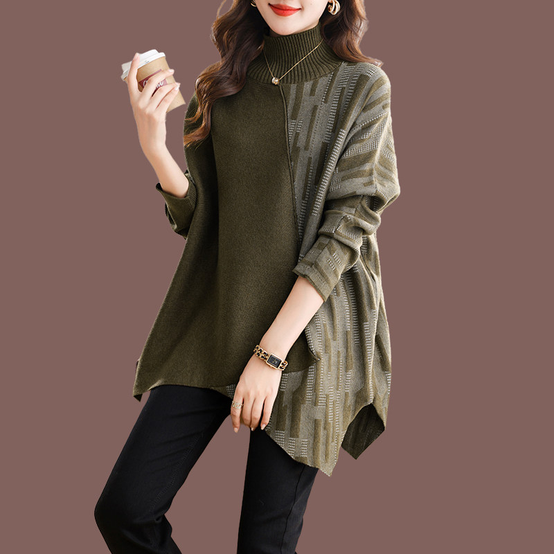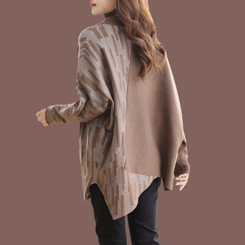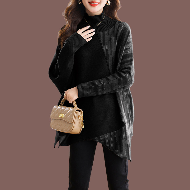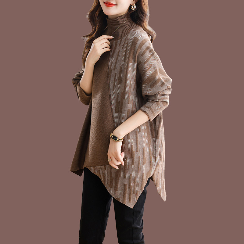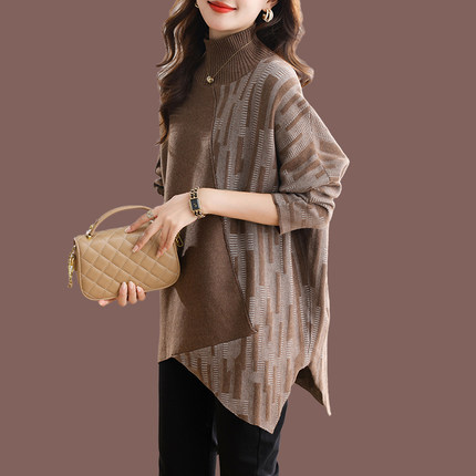 秋冬新款高端羊绒衫女中长款毛衣裙半高领不规则宽松针织打底衫