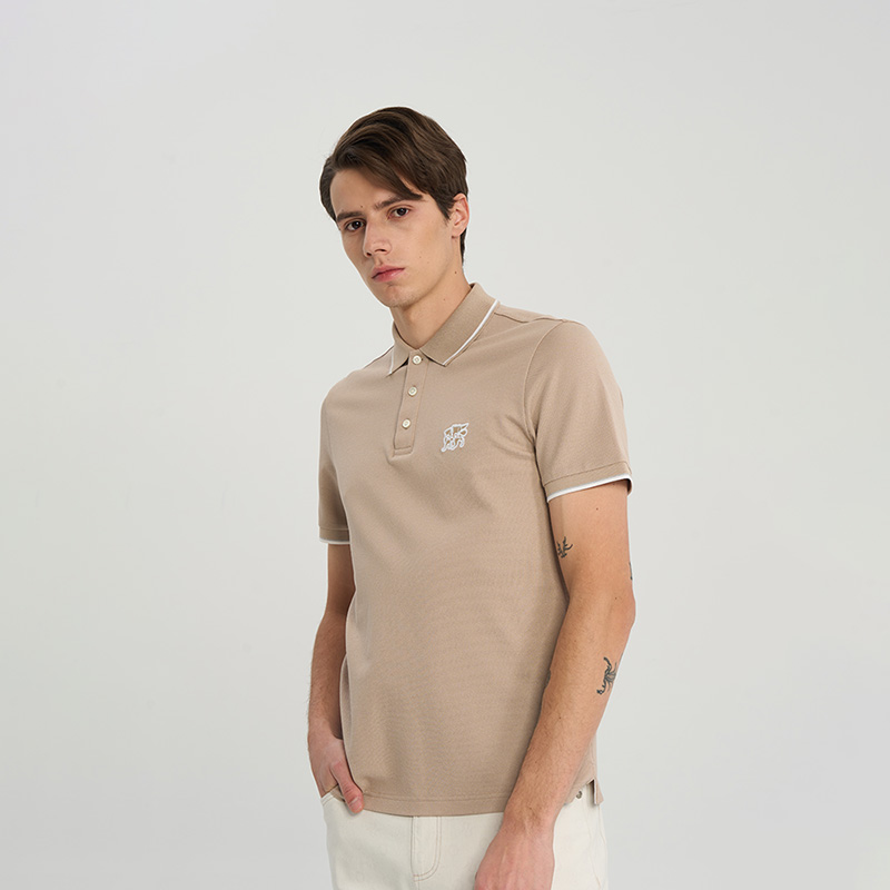 【珠地网眼】RARE威雅男装夏季新款 翻领Polo衫浅咖色短袖T恤