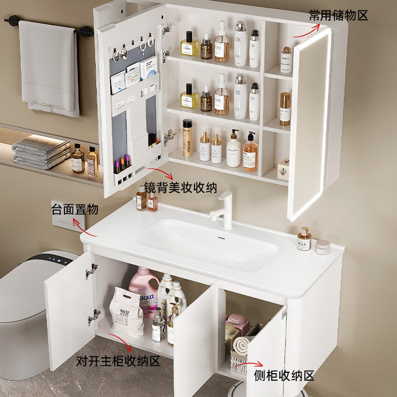 顾家家居圆弧浴室柜陶瓷一体盆奶油风卫浴柜卫生间洗手盆柜组合