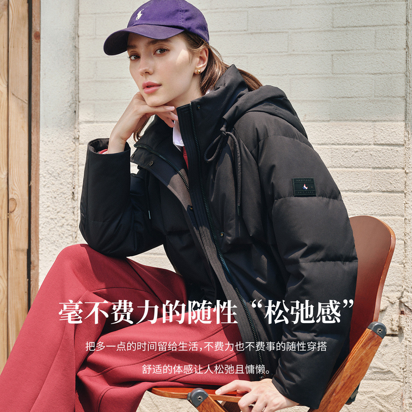 Navigare意大利小帆船通勤连帽羽绒服女士秋冬新款加厚保暖外套