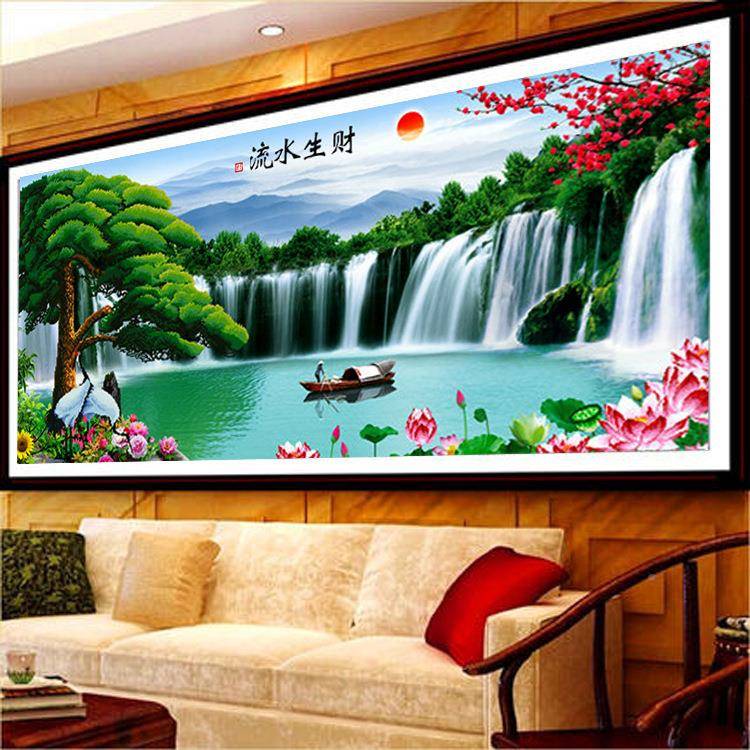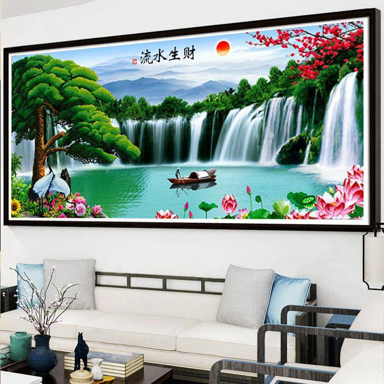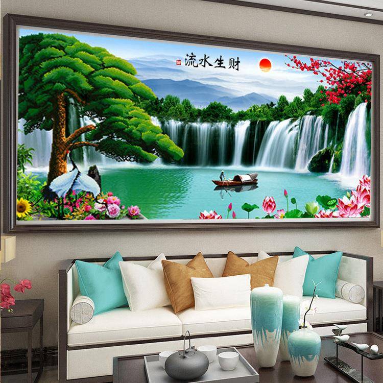 十字绣画手工自己绣厂直供Y9CT3043客厅家大迎客松水生财流风景