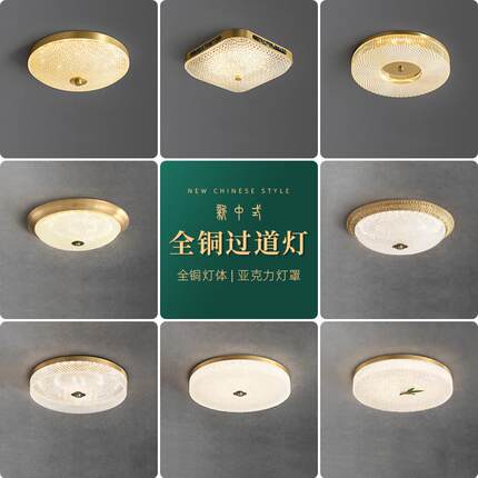 全铜新中式过道吸顶灯圆形禅意中国风走廊衣帽间入户玄关阳台灯具
