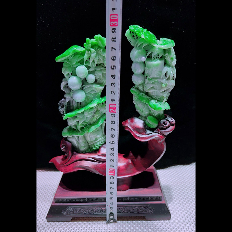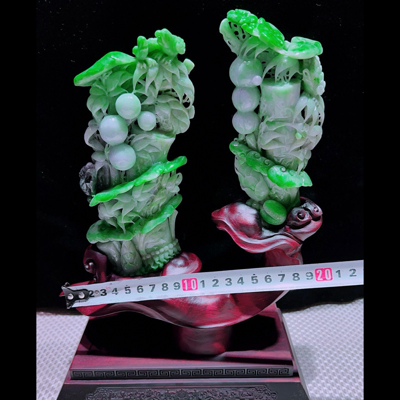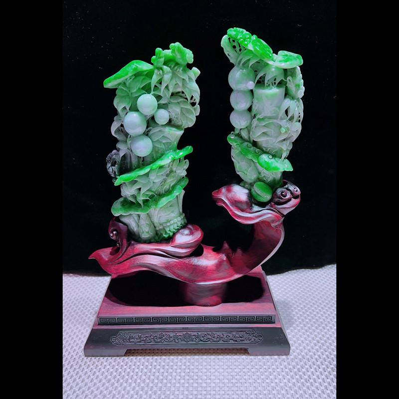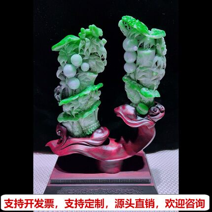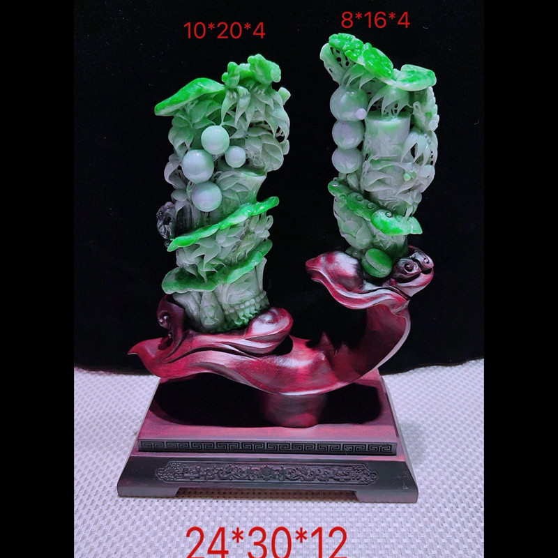 缅甸天然A货玉石翡翠孤品 精雕老坑绿色节节高升步步高升摆件