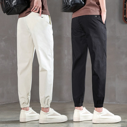 米白色束脚裤男九分裤透气