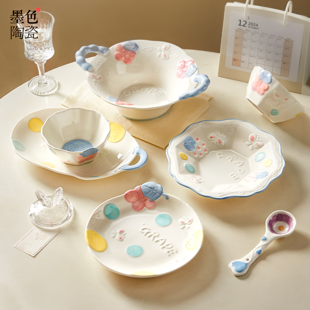 墨色高颜值米饭碗家用2026新款可爱餐具陶瓷酸奶碗甜品碗早餐盘子