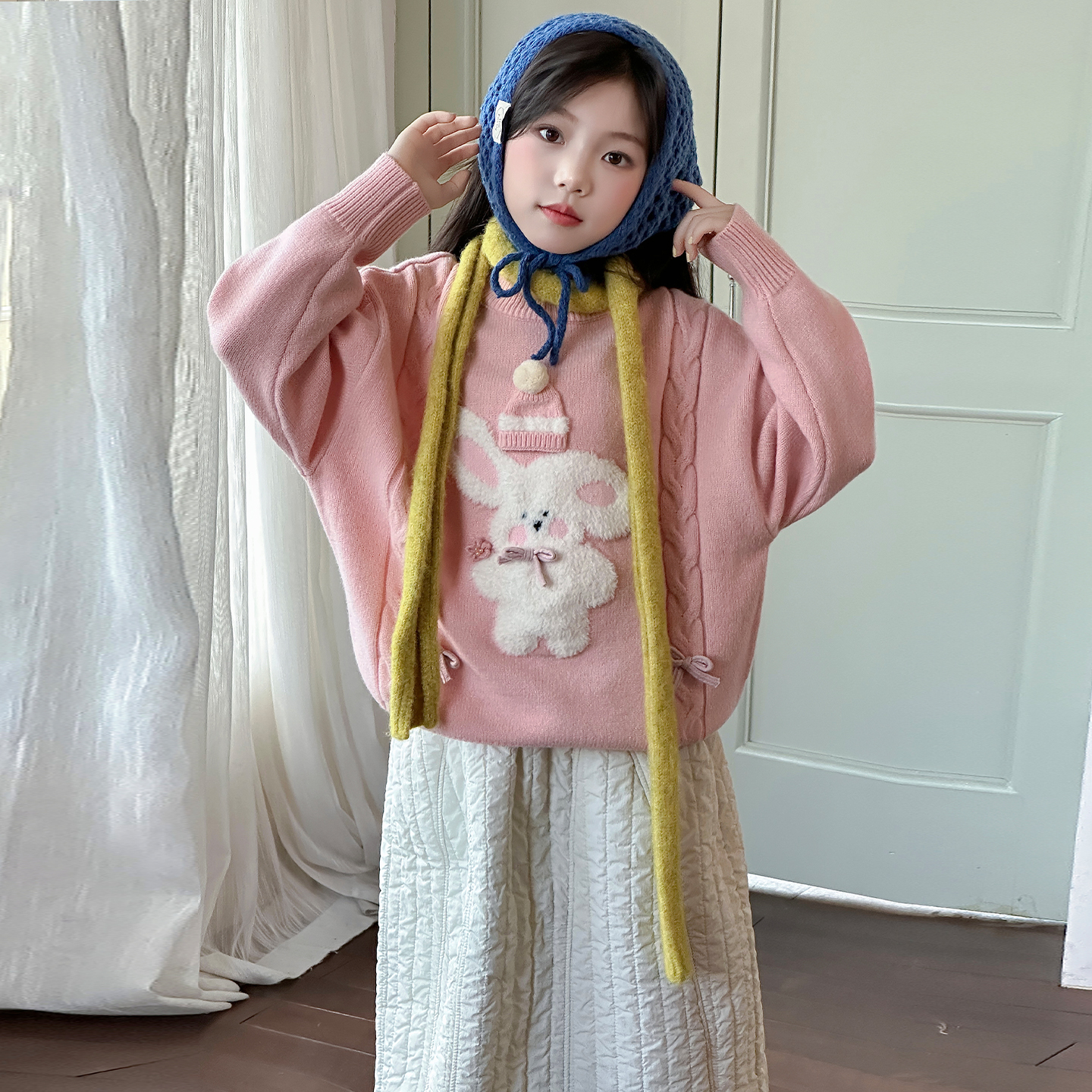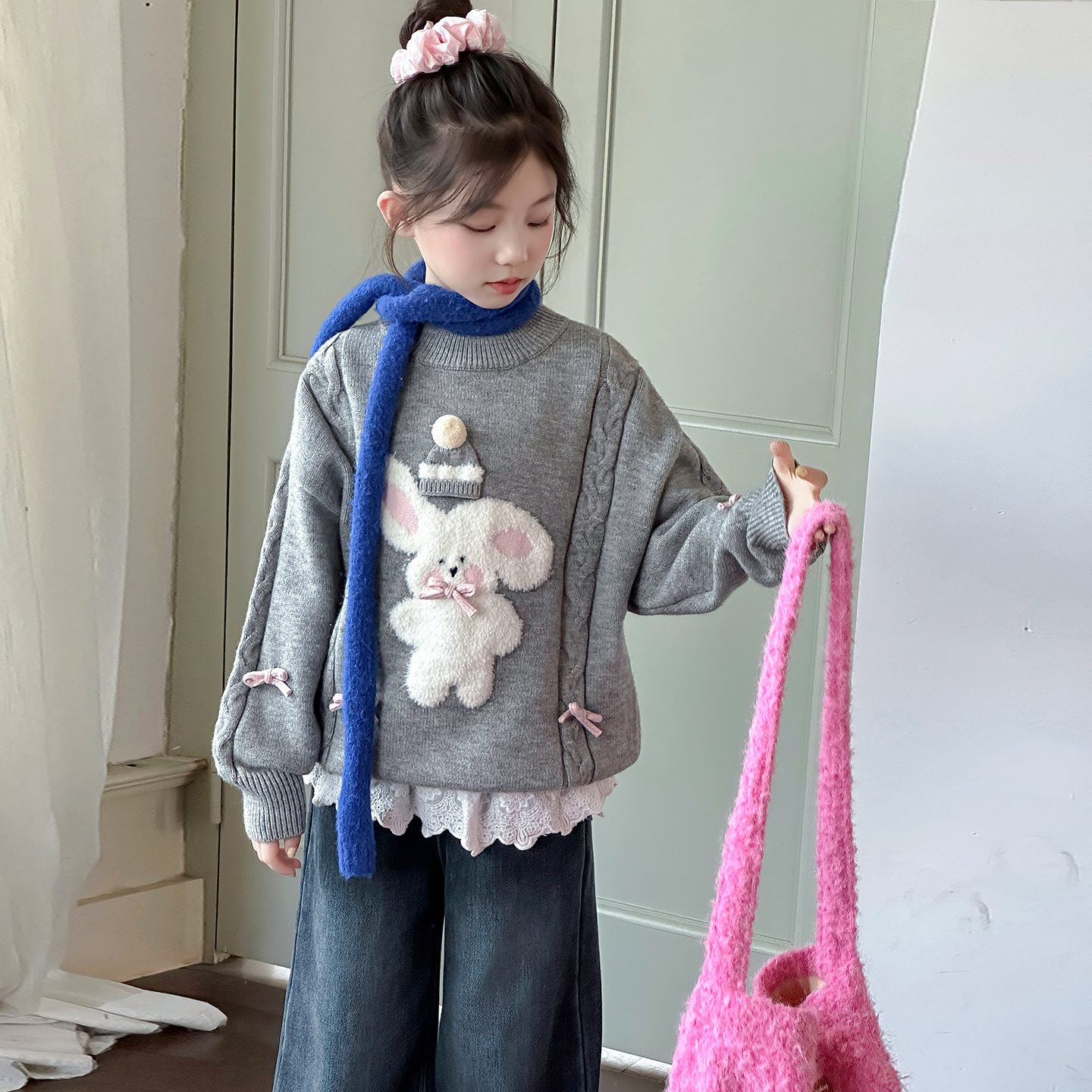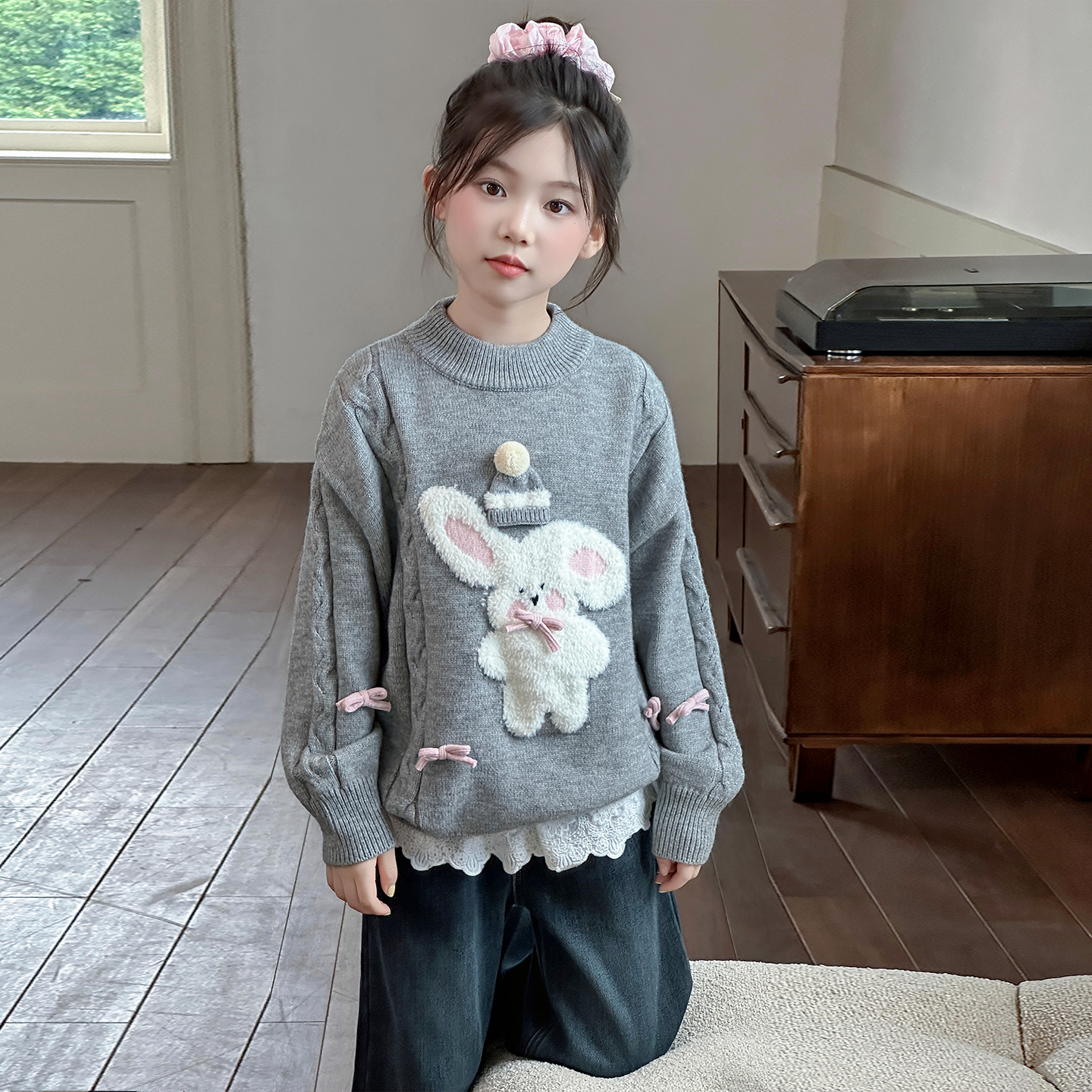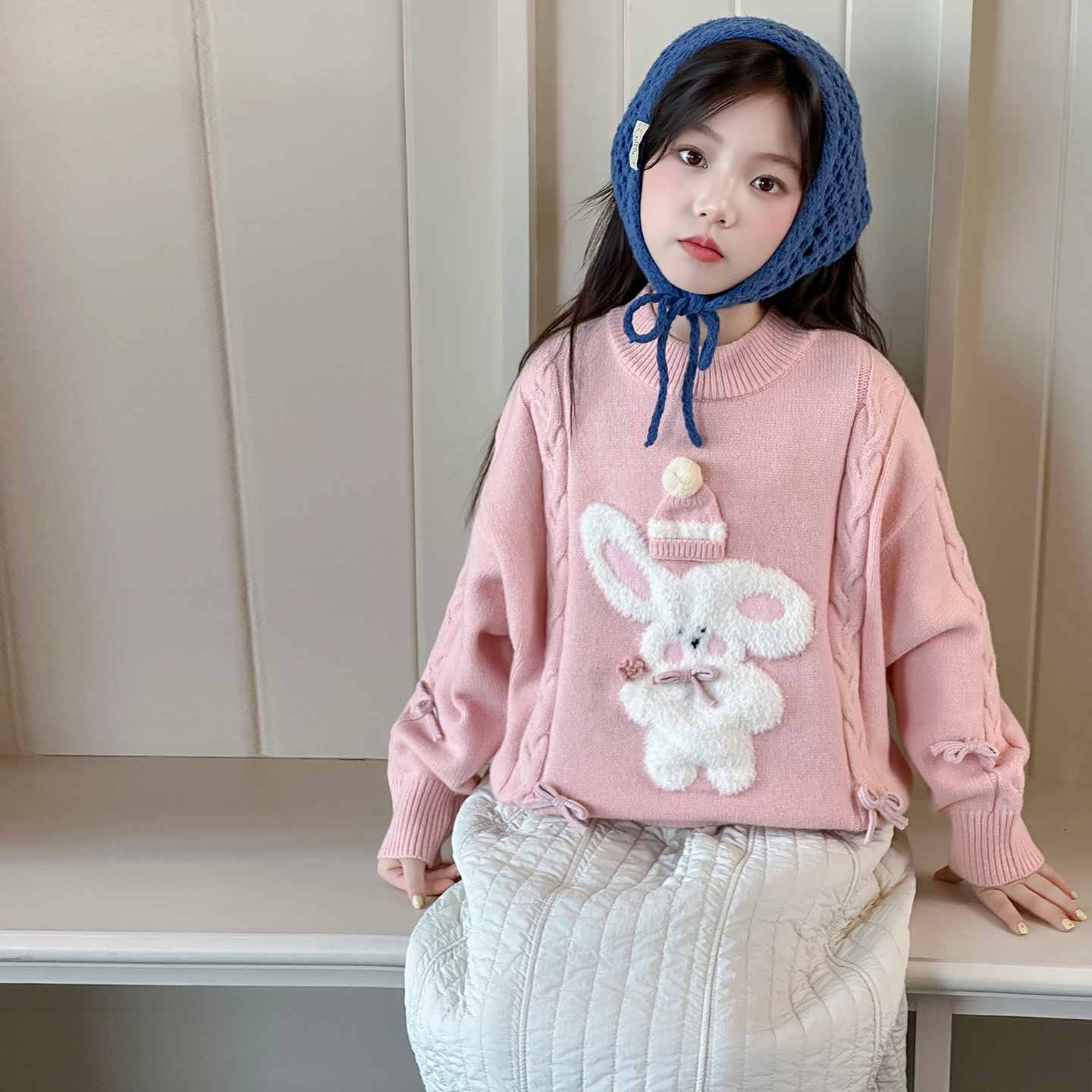 女童冬季毛衣2025新款中大童休闲舒适套头衫青少年冬款卡通针织衫