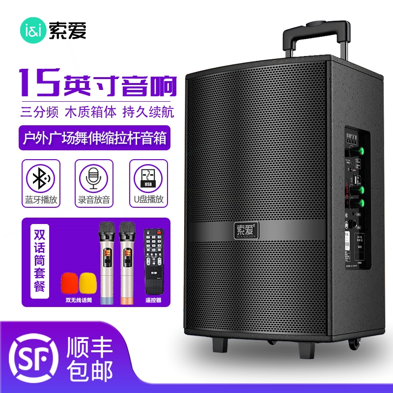 索爱大功率重低音广场舞音响移动箱带麦高清户外蓝牙12英寸拉杆音