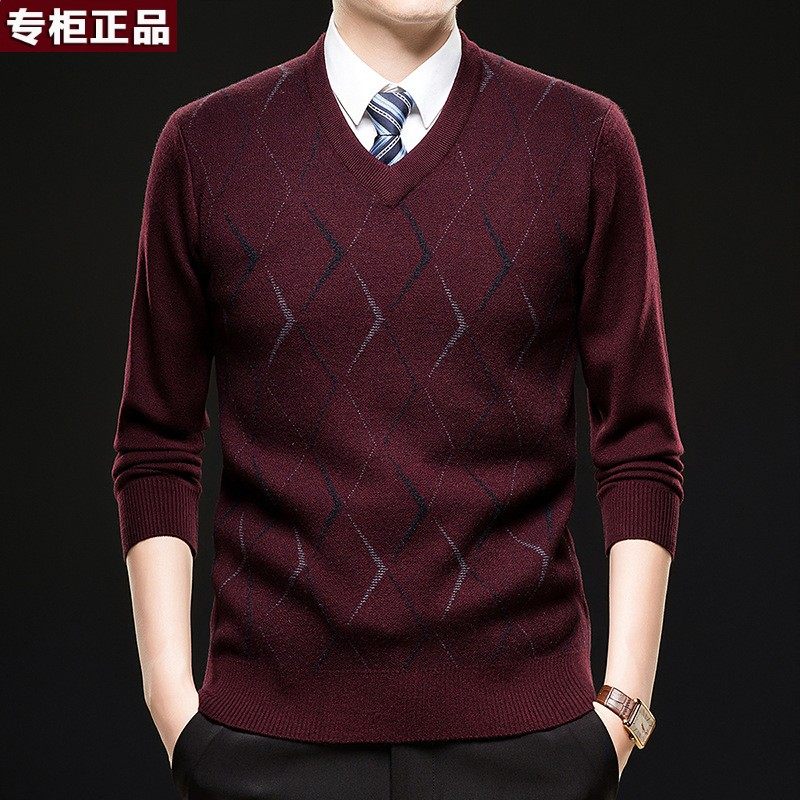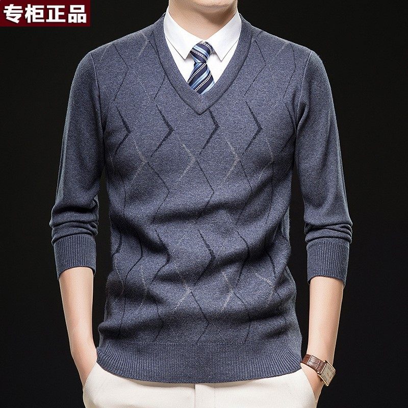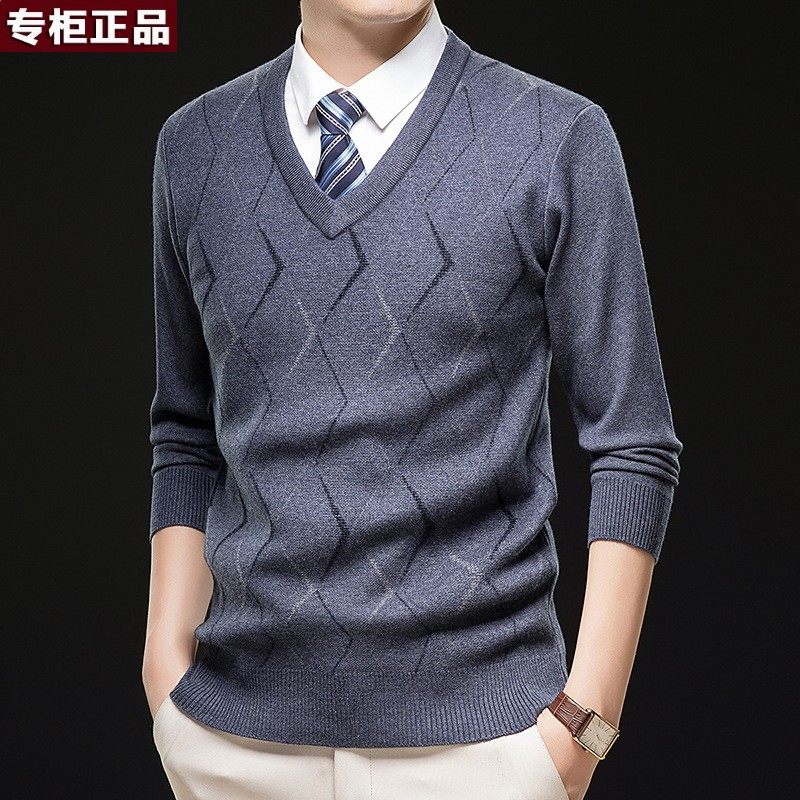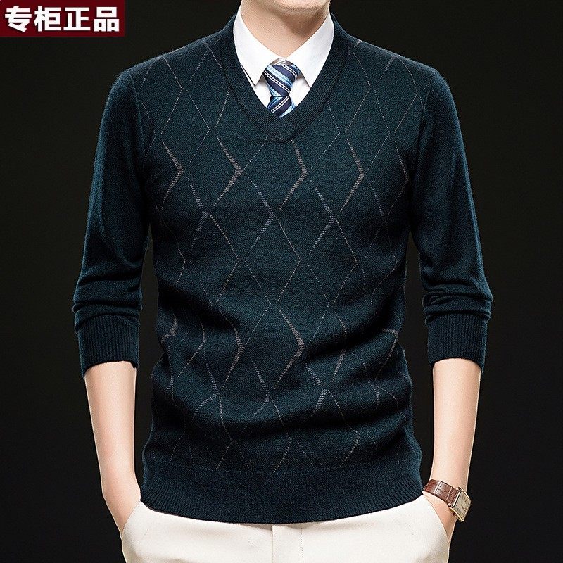 鄂尔多斯市产鸡心领羊毛衫加厚针织衫毛衣秋冬季男士休闲内搭打底