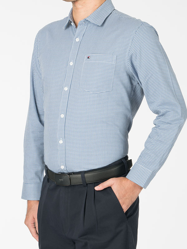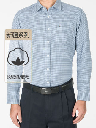 嘉意秋冬季磨毛衬衣男款长袖宽松休闲上班通勤蓝色格子衬衫A62102