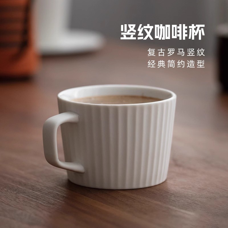 VANDROOP 手冲咖啡杯日式陶瓷竖纹便携高级精致家用简约马克杯子