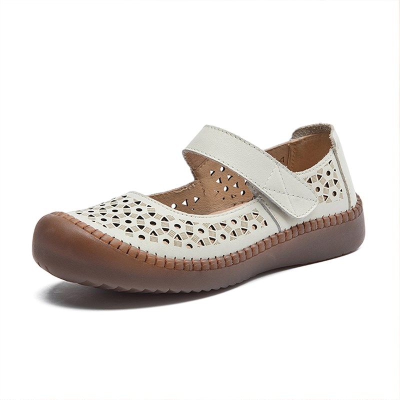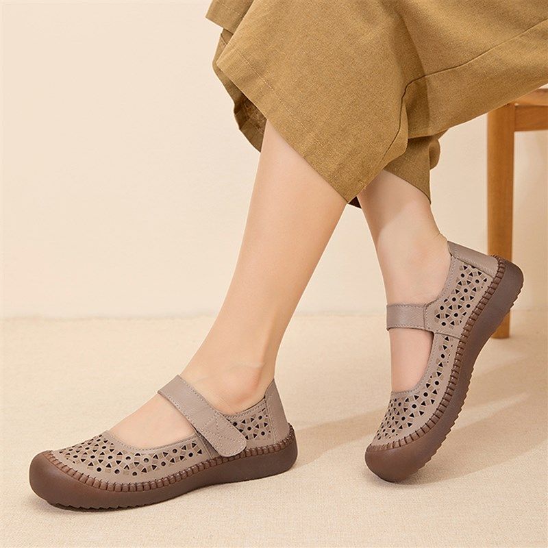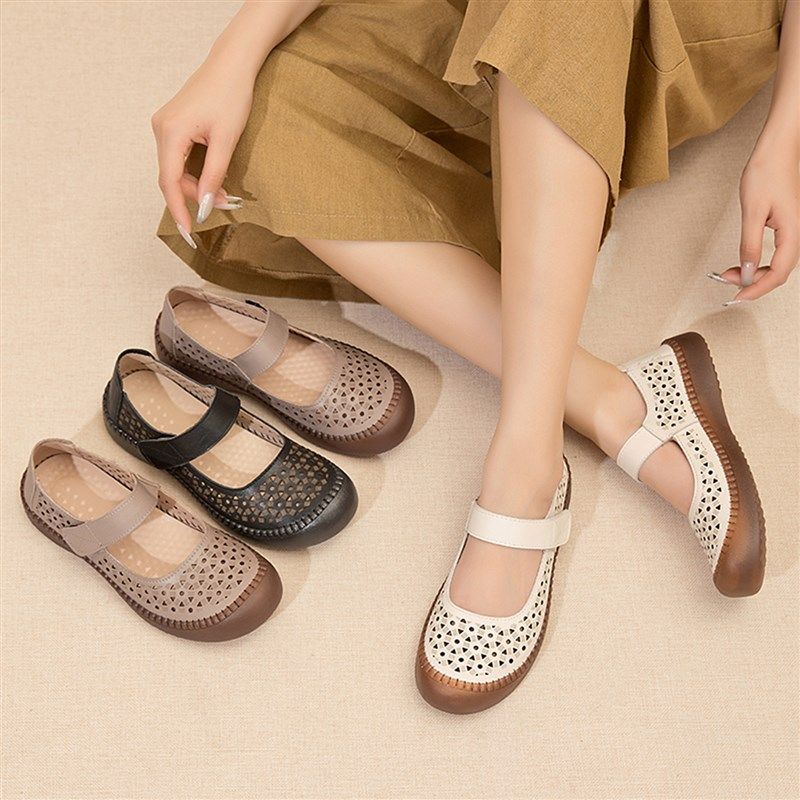 头层牛皮中老年妈妈凉鞋新款复古镂空洞洞女鞋牛筋软底防滑奶奶鞋