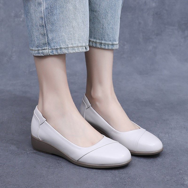 真皮软底妈妈鞋夏平底单鞋女舒适中老年女鞋不累脚工作鞋坡跟皮鞋