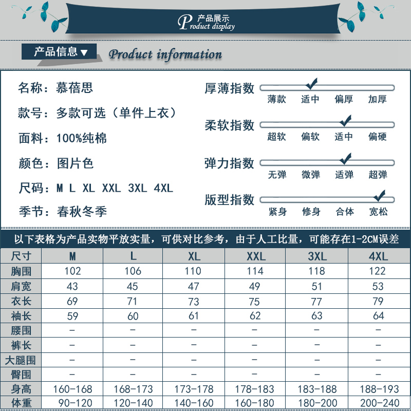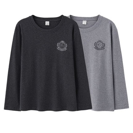 春秋季男单件睡衣上衣长袖100%纯棉圆领休闲加大码全棉居家服上装