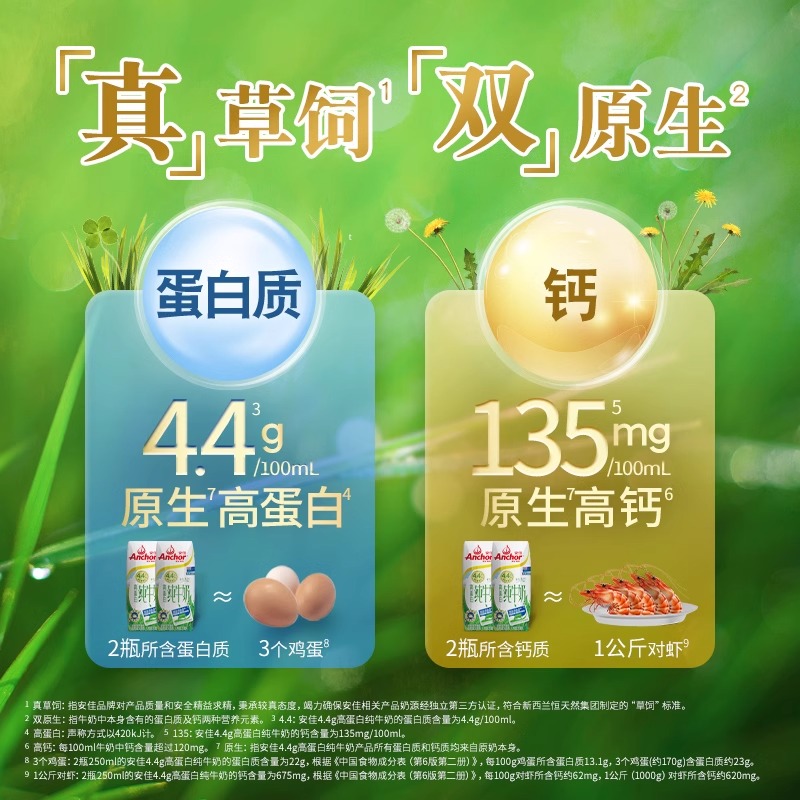 安佳纯牛奶4.4g高蛋白进口草饲双原生营养早餐奶250ml*24盒整箱装