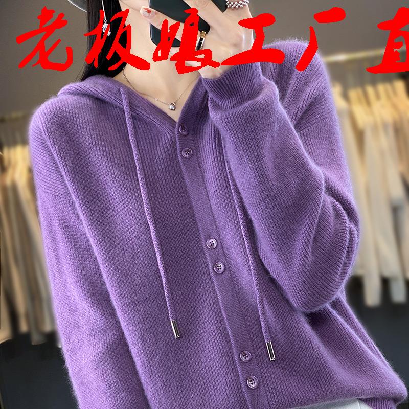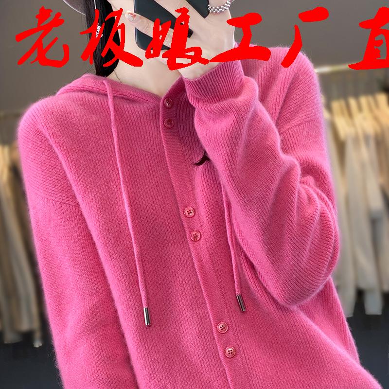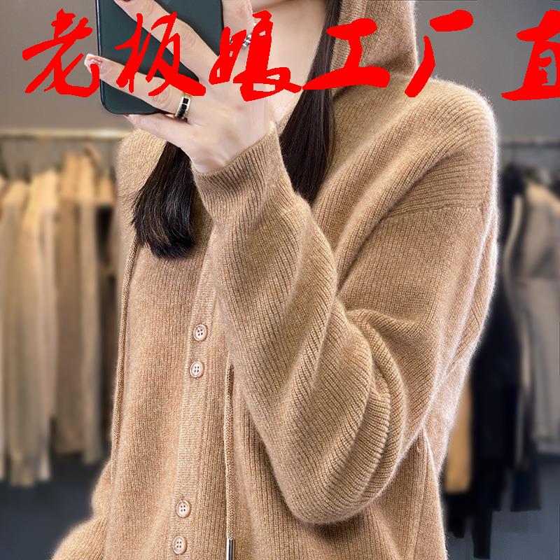 爆款宽松秋冬羊毛外套女洋气爆款毛衣外搭2024新款羊绒连帽针织开