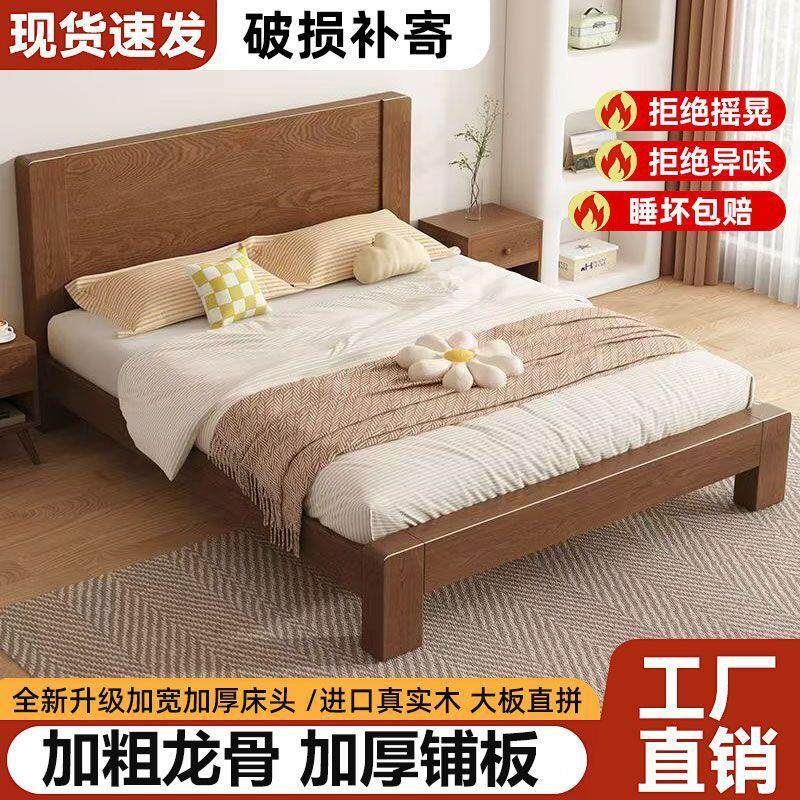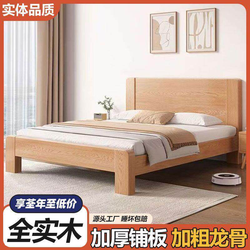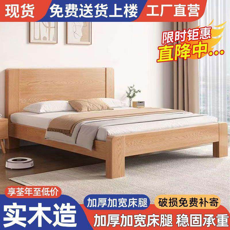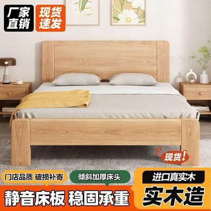 拉车全实木床1.8米双人床家用主卧现代简约出租房用1.2米小户型单