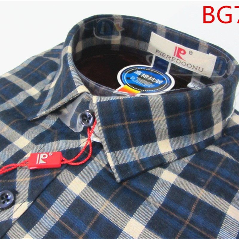 青少年特小码版男士长袖加绒加厚保暖衬衫男装矮个格子衬衣36码