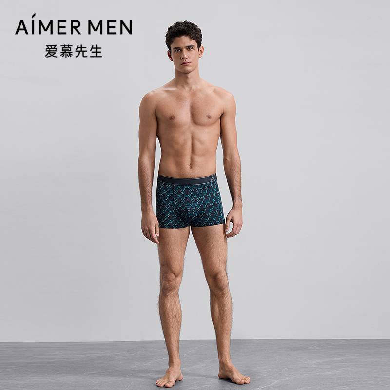 爱慕先生正品时尚红色印花内裤男士款无痕莫木代尔装腰平角裤