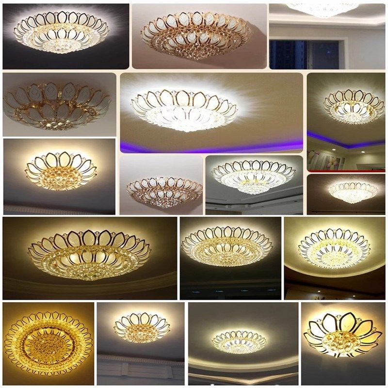 欧式客厅灯大气金色水晶灯圆形LED莲花吸顶灯具主卧室灯餐厅灯饰