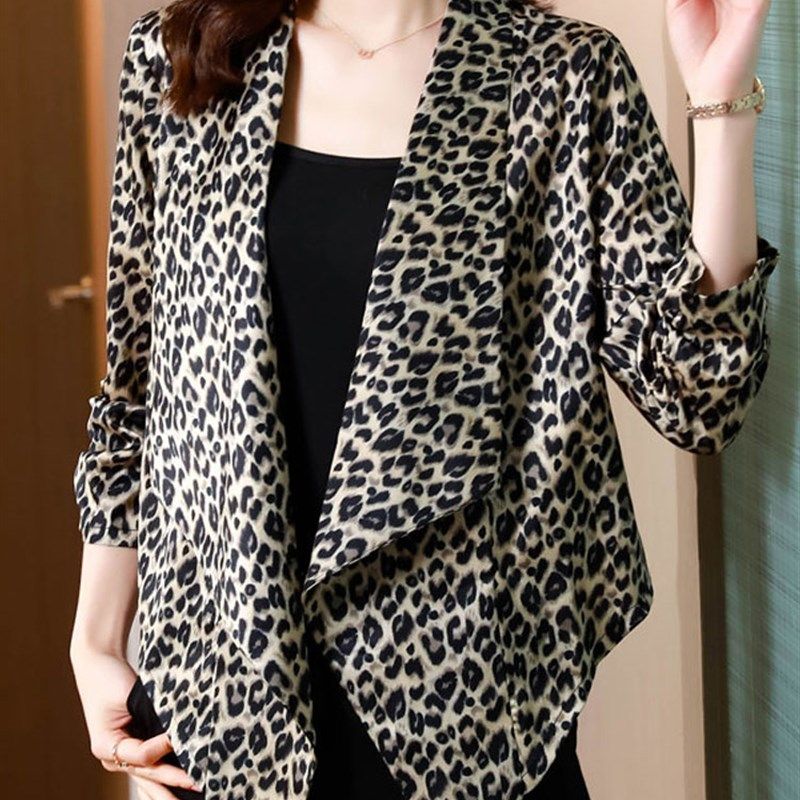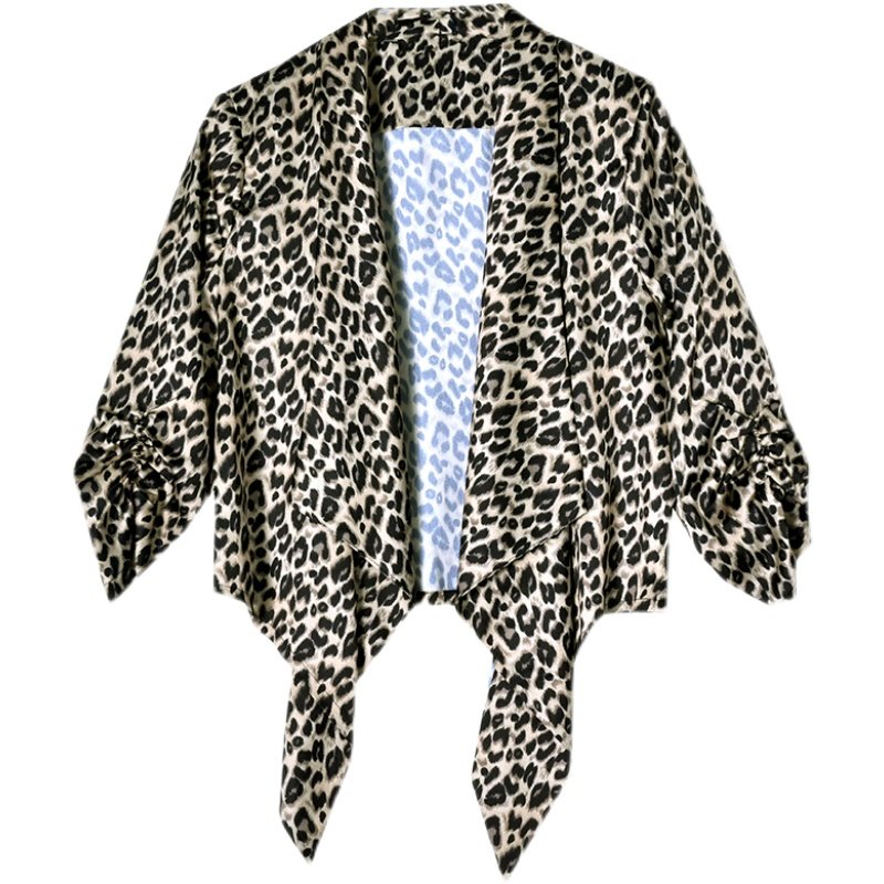 2022年新款薄款防晒短外套女士夏季豹纹上衣小披肩配裙子外搭开衫
