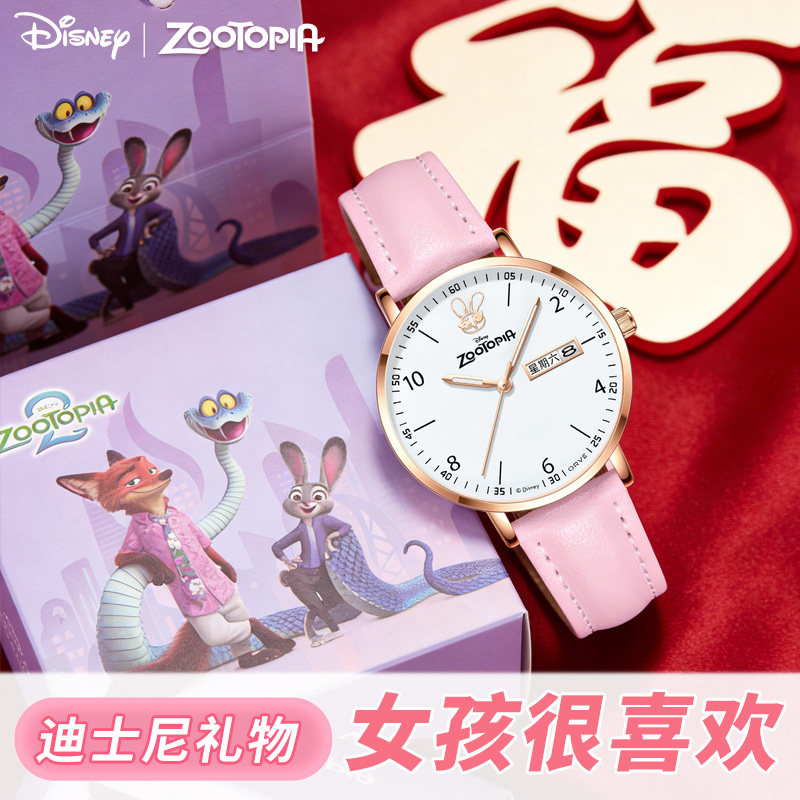 迪士尼疯狂动物城手表女学生初高中只看时间儿童女孩静音新年礼物