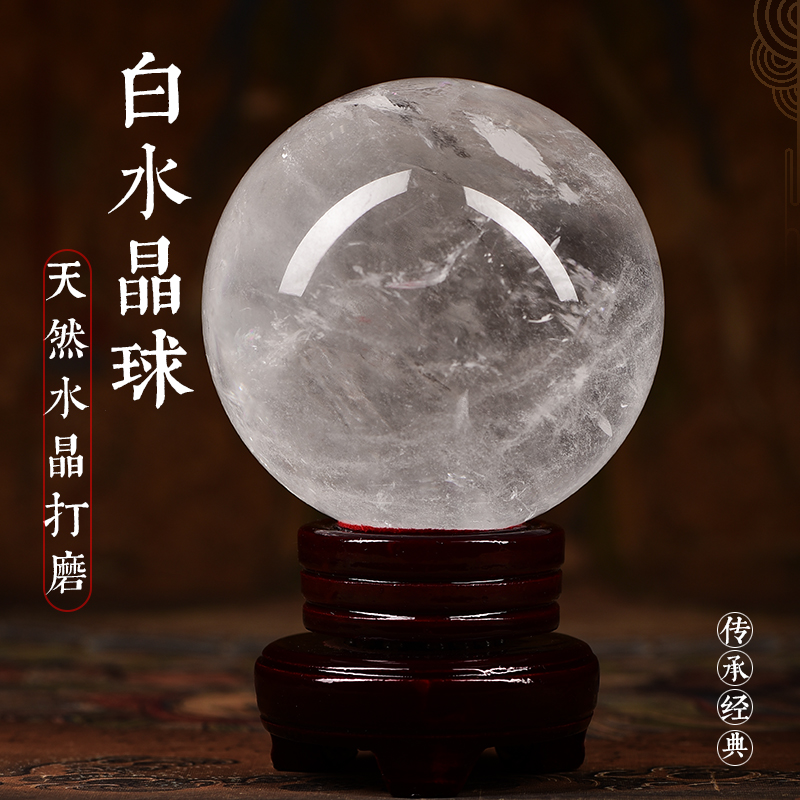 天然白色水晶球摆件招财真水晶球乔迁送礼客厅玄关家居摆件