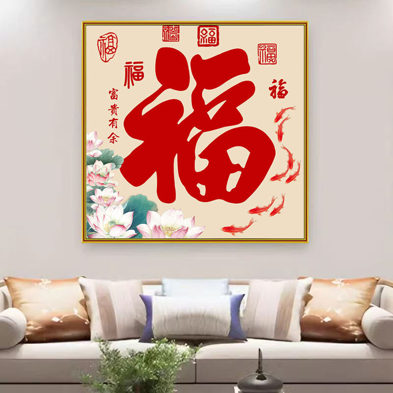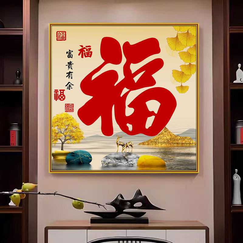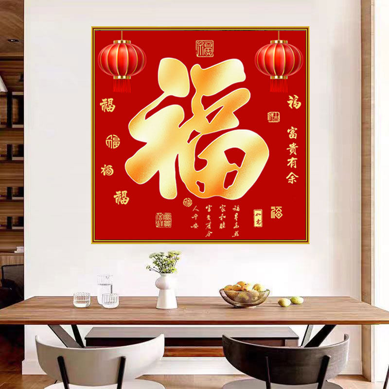 中式福字贴画五福临门入户玄关装饰画餐厅客厅过道福气满满墙壁画