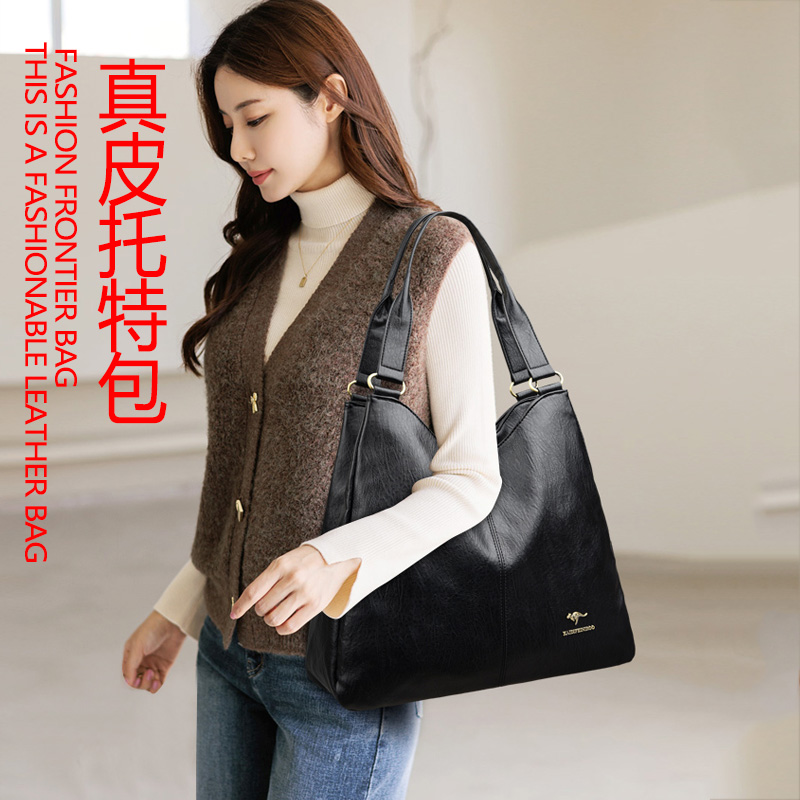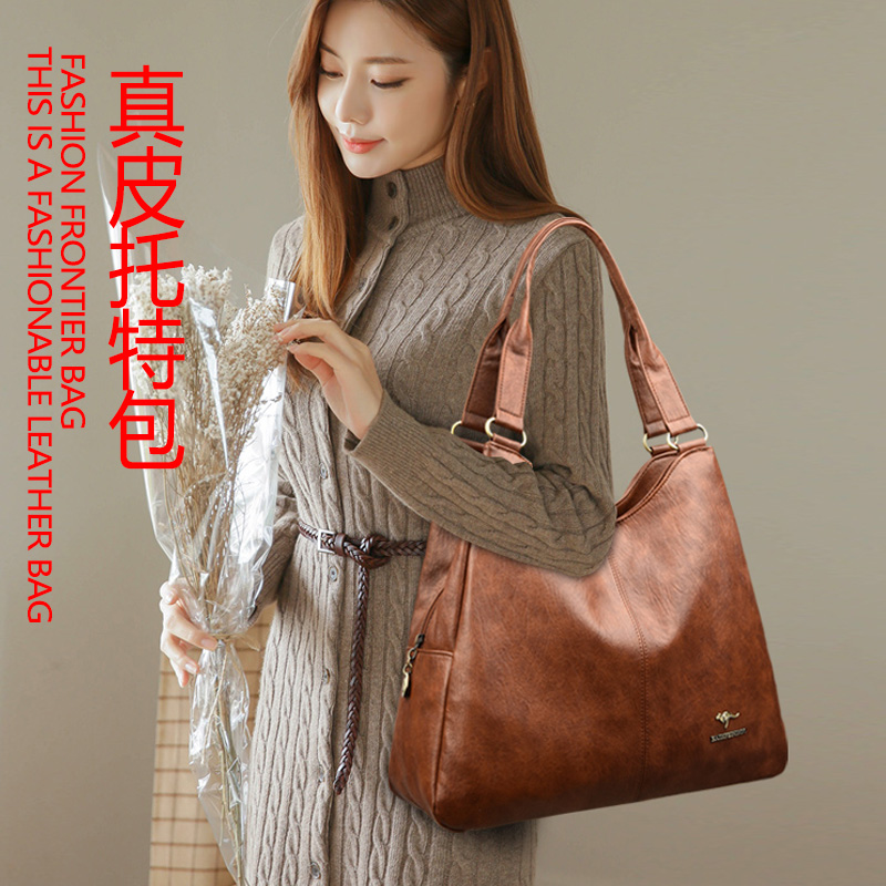 袋鼠真皮女包托特包女士大容量2025新款包包手提单肩包时尚软牛皮