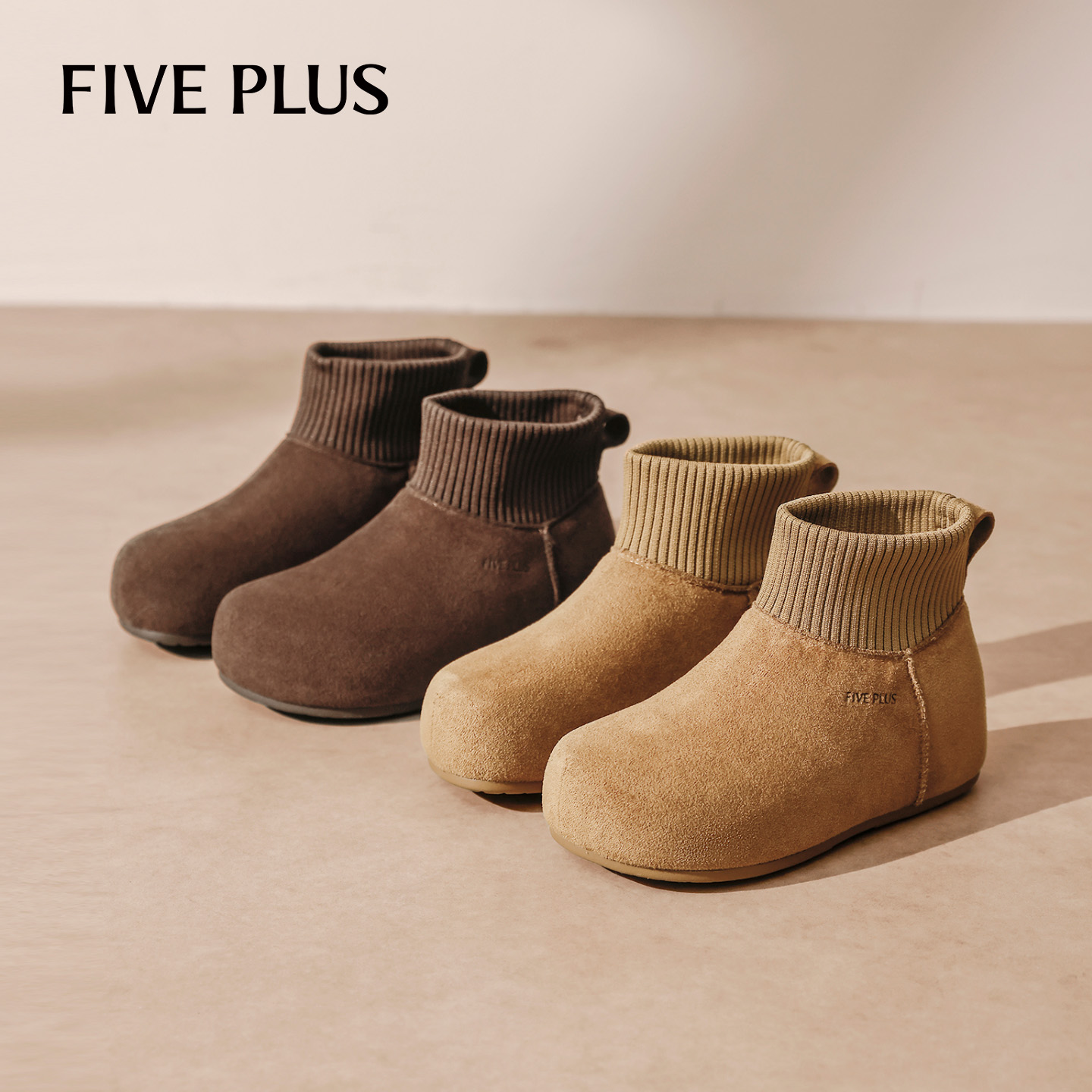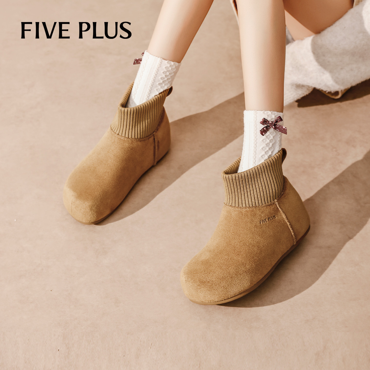 FIVE PLUS内增高雪地靴女平底2025冬季新款针织弹力加厚保暖棉鞋