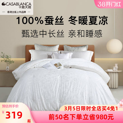 卡撒天娇蚕丝被中长丝绵100%蚕丝冬被被子加厚被芯四季通用保暖