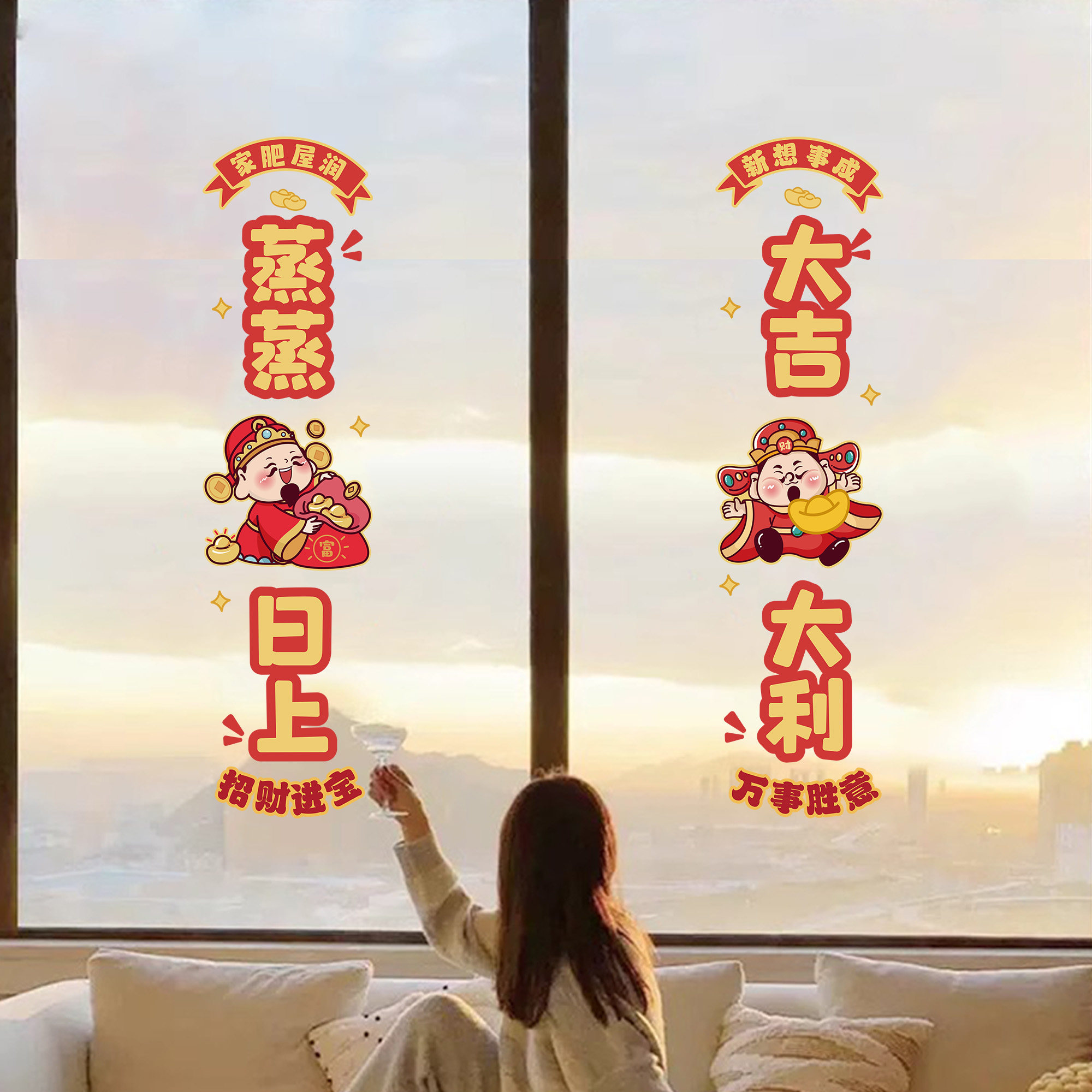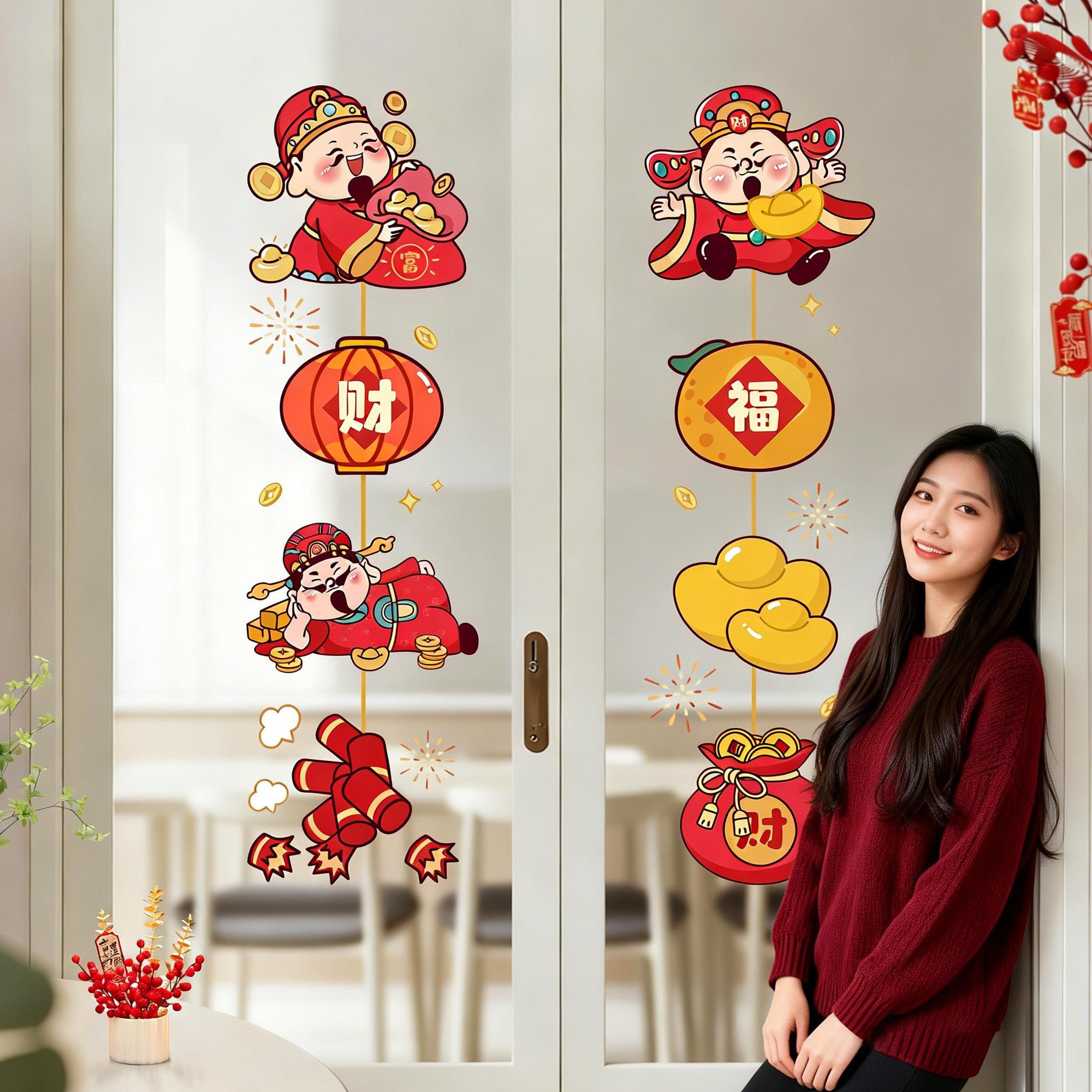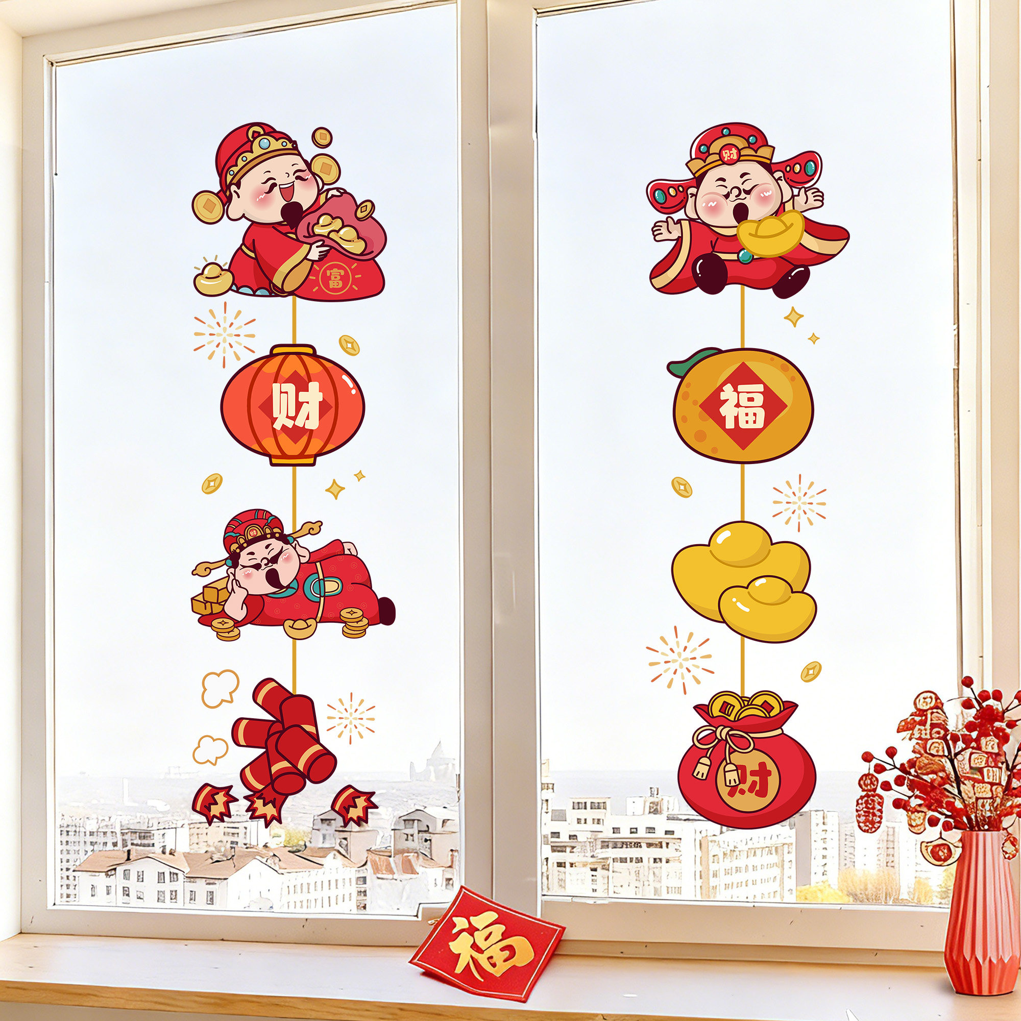 蒸蒸日上||财神爷新年窗花静电贴