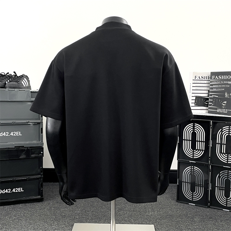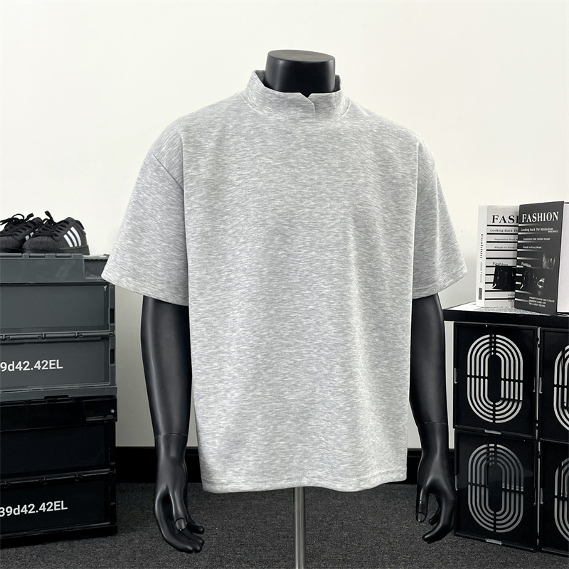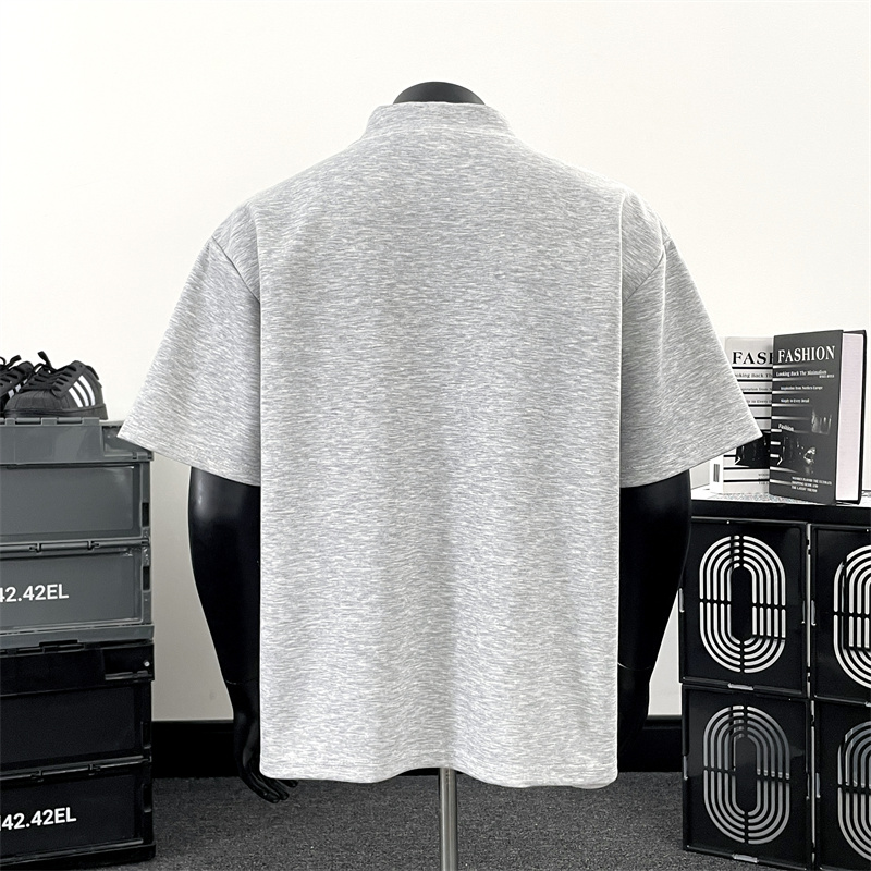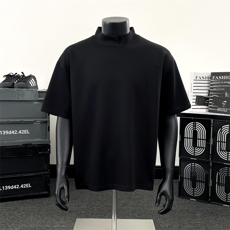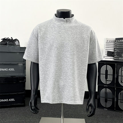 重磅垫肩立领短袖t恤男款夏季美式宽松休闲打底纯色上衣半袖简约