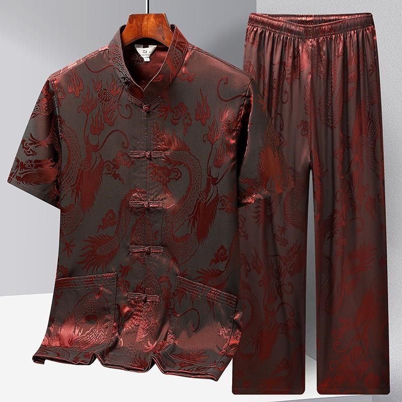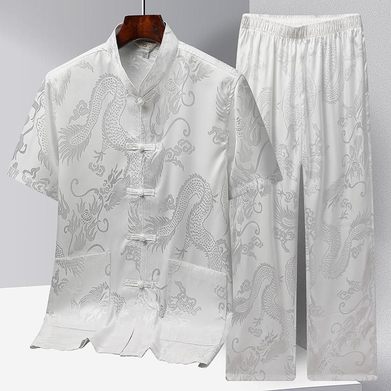 男士唐装中老年冰丝短袖套装中国风男装爸爸装夏季老年人爷爷夏装