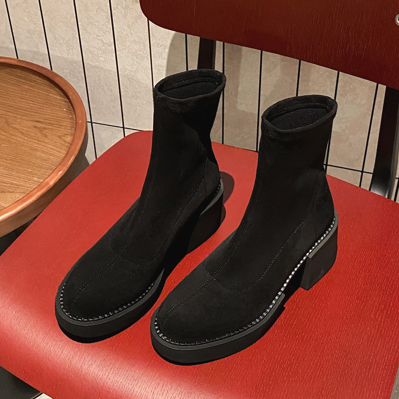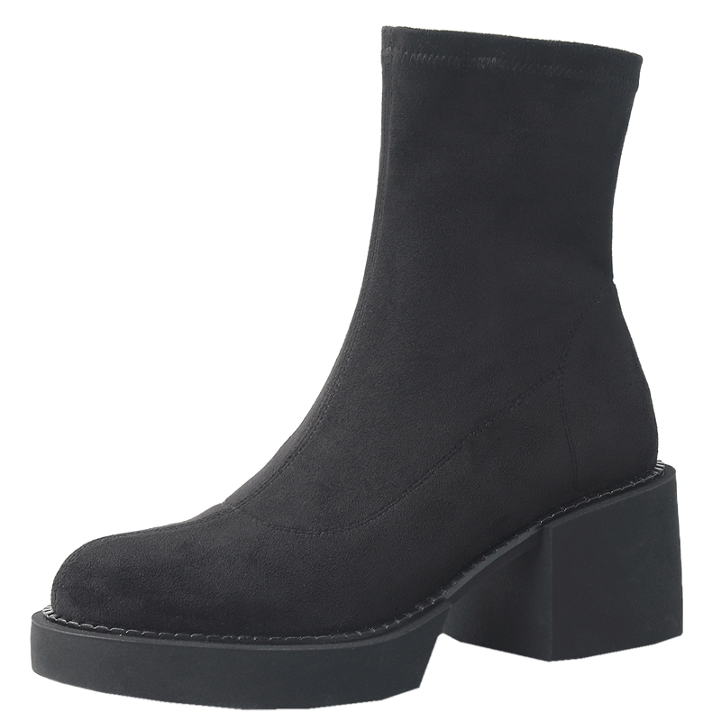 秋冬粗跟袜子短筒靴女松糕厚底薄款马丁靴显瘦切尔西靴弹力瘦瘦靴