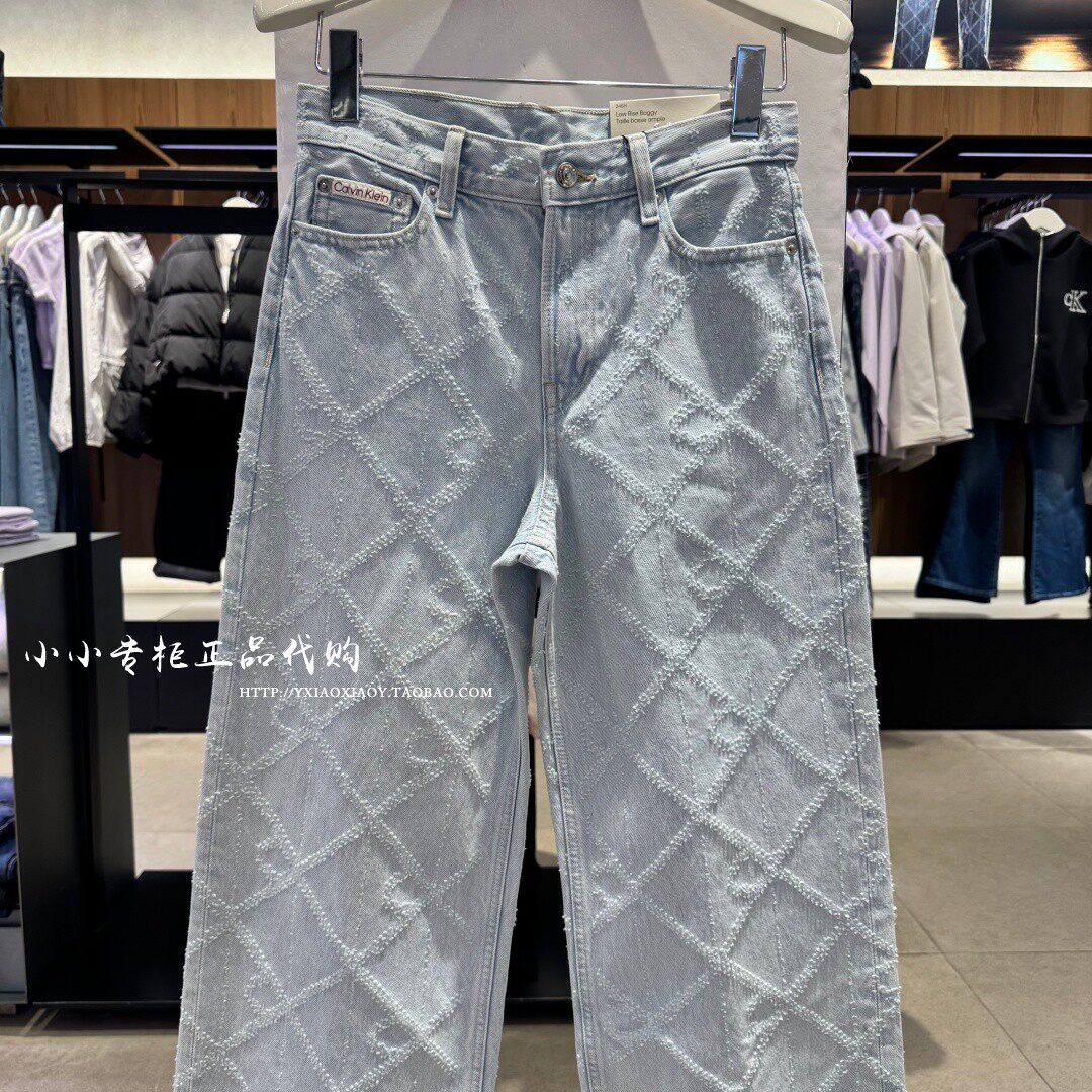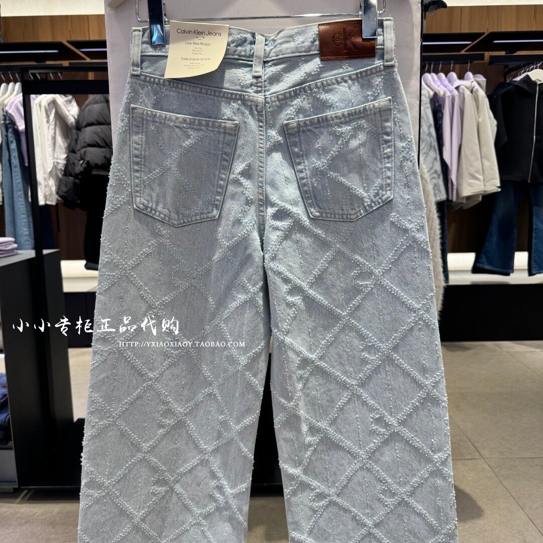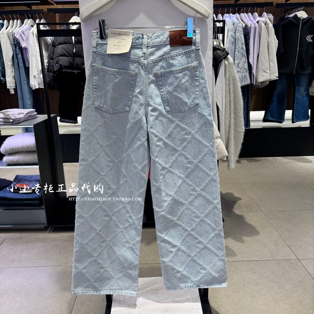 CK Jeans专柜正品 2026春夏新款女士老花宽松阔腿牛仔裤 47F495G