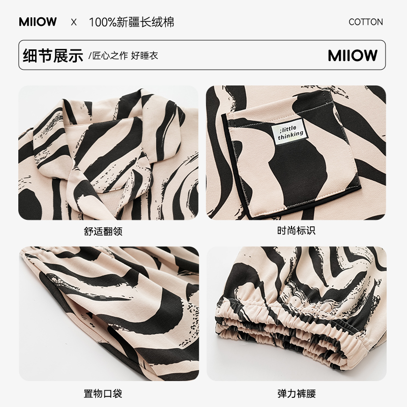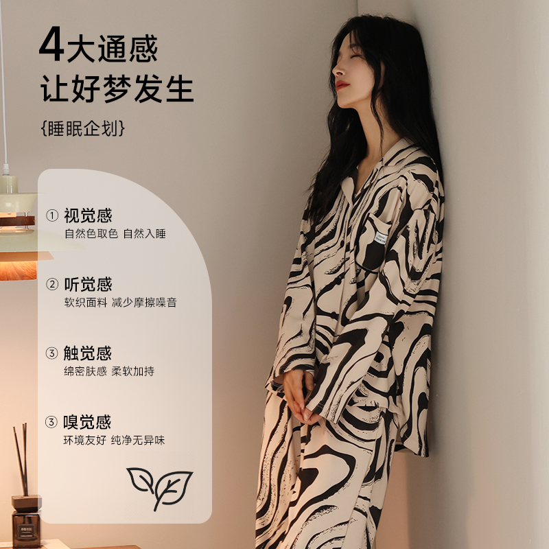 猫人纯棉睡衣女春秋款长袖长裤套装开衫休闲高级感家居服2025新款