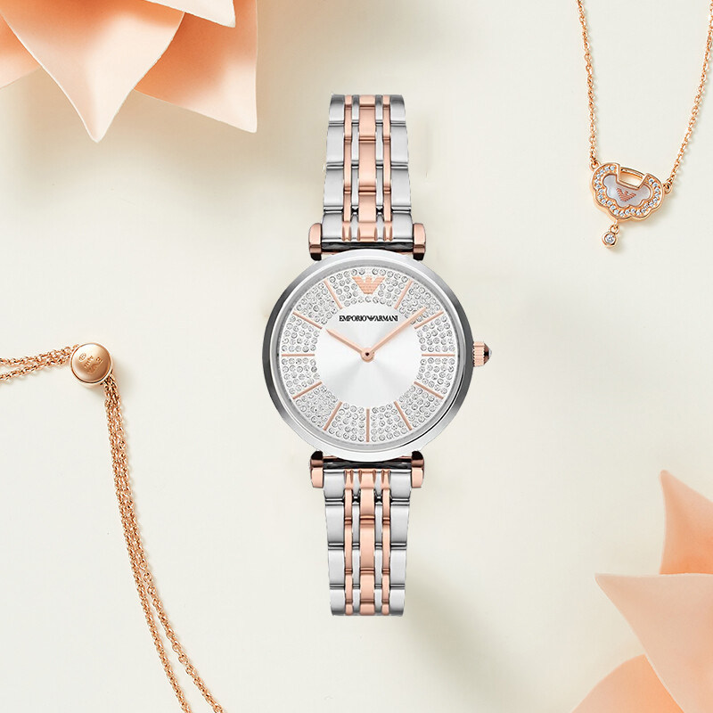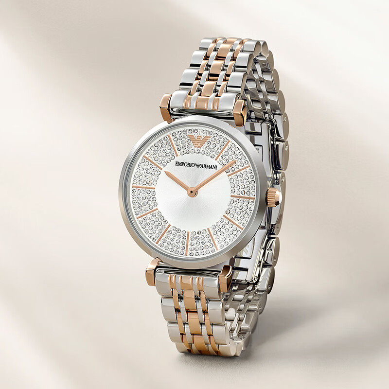 阿玛尼手表女时尚满天星休闲镶钻石英女腕表AR11537礼物