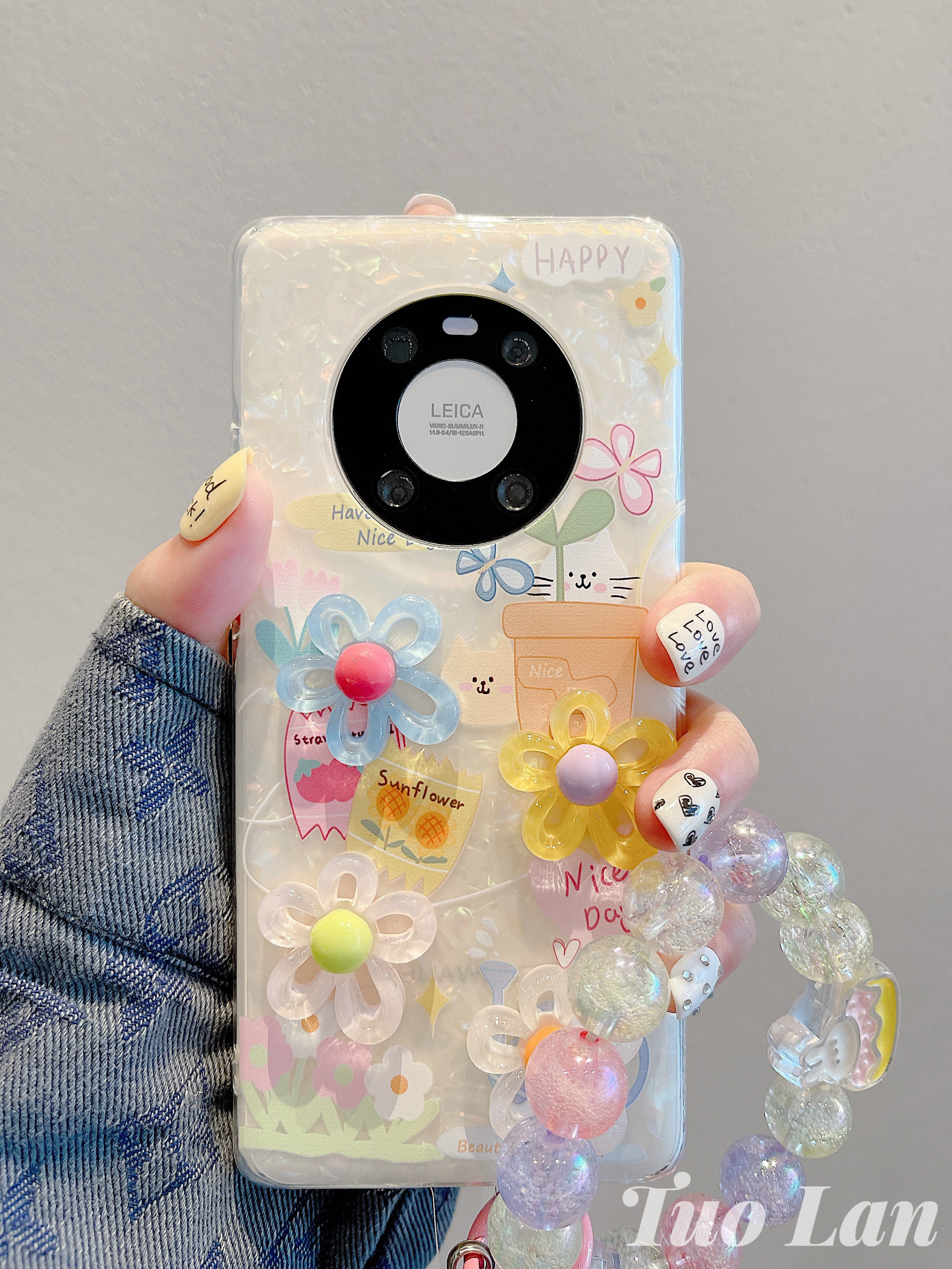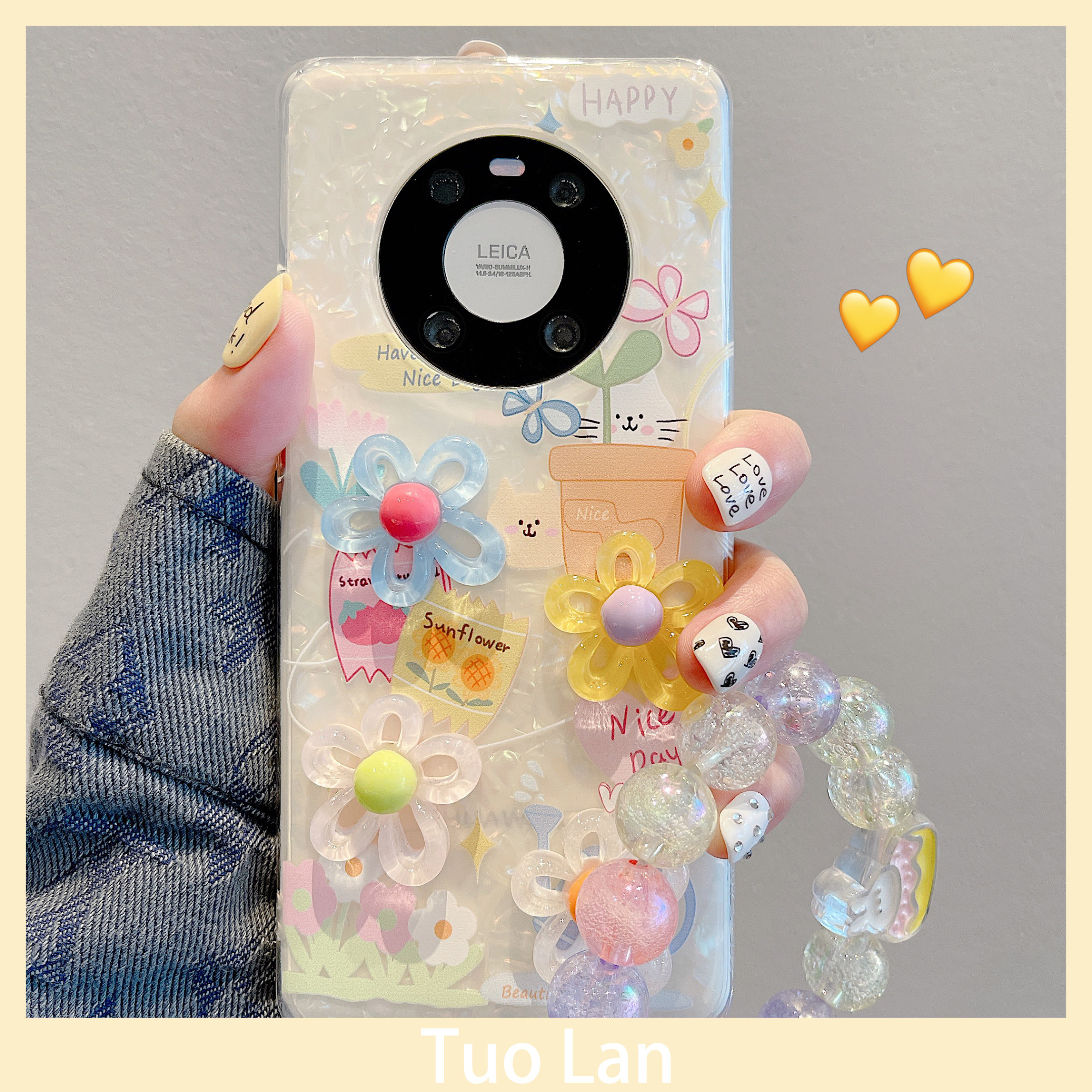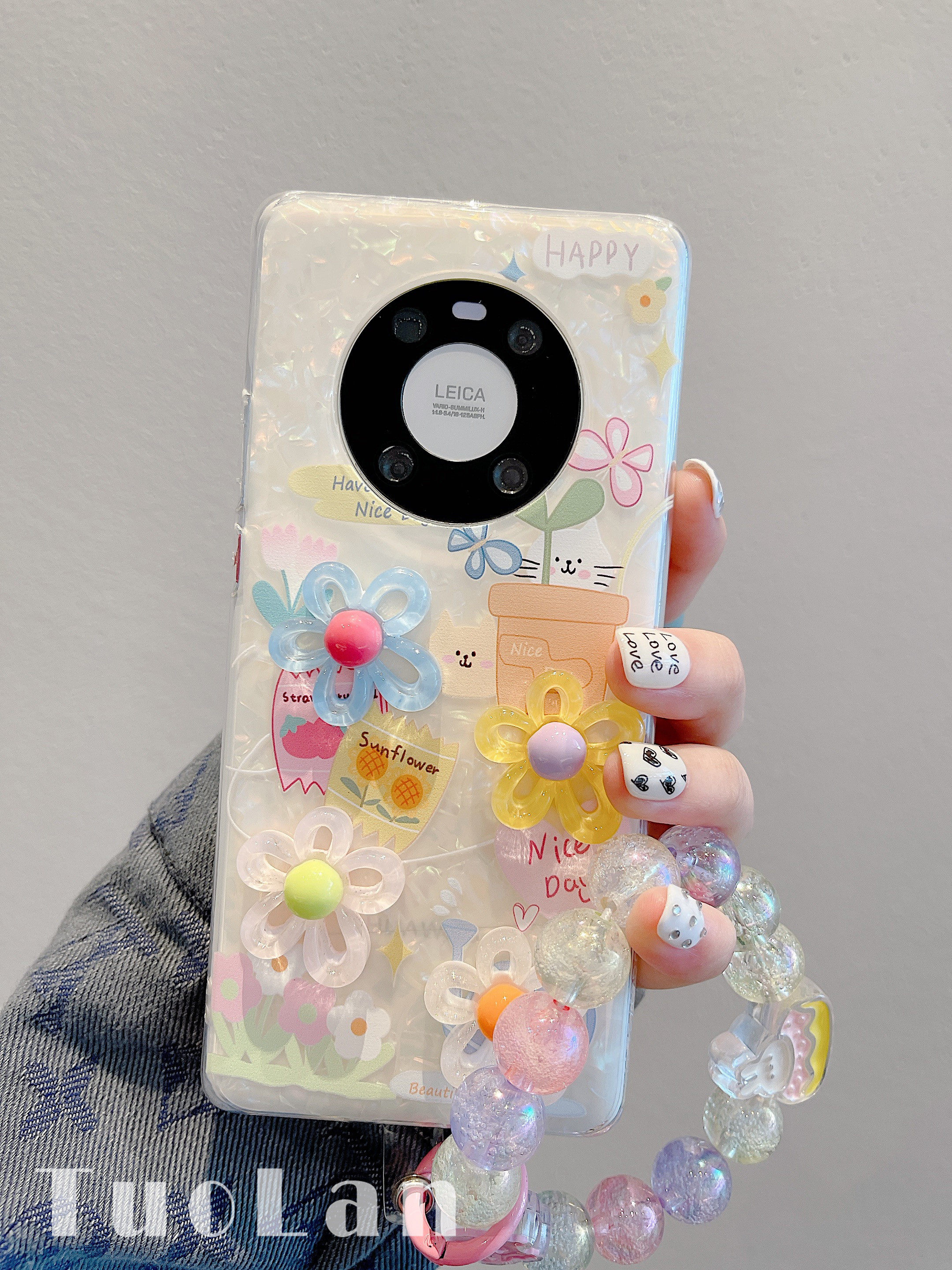 拓岚 适用华为mate40pro手机壳ins立体彩色花朵猫咪mate50pro梦幻贝壳纹mate30pro珠子链条mate50e防摔保护女