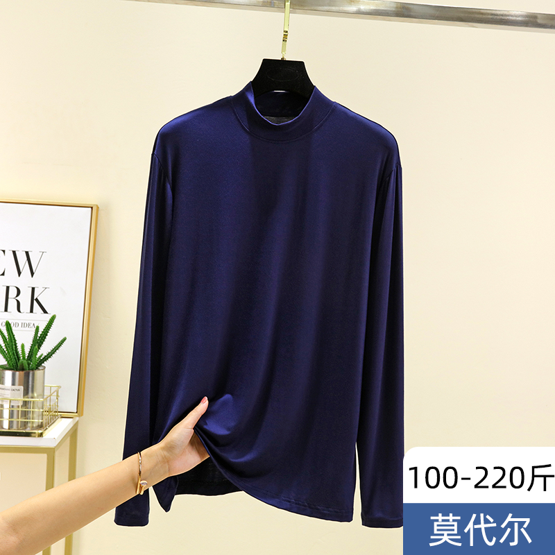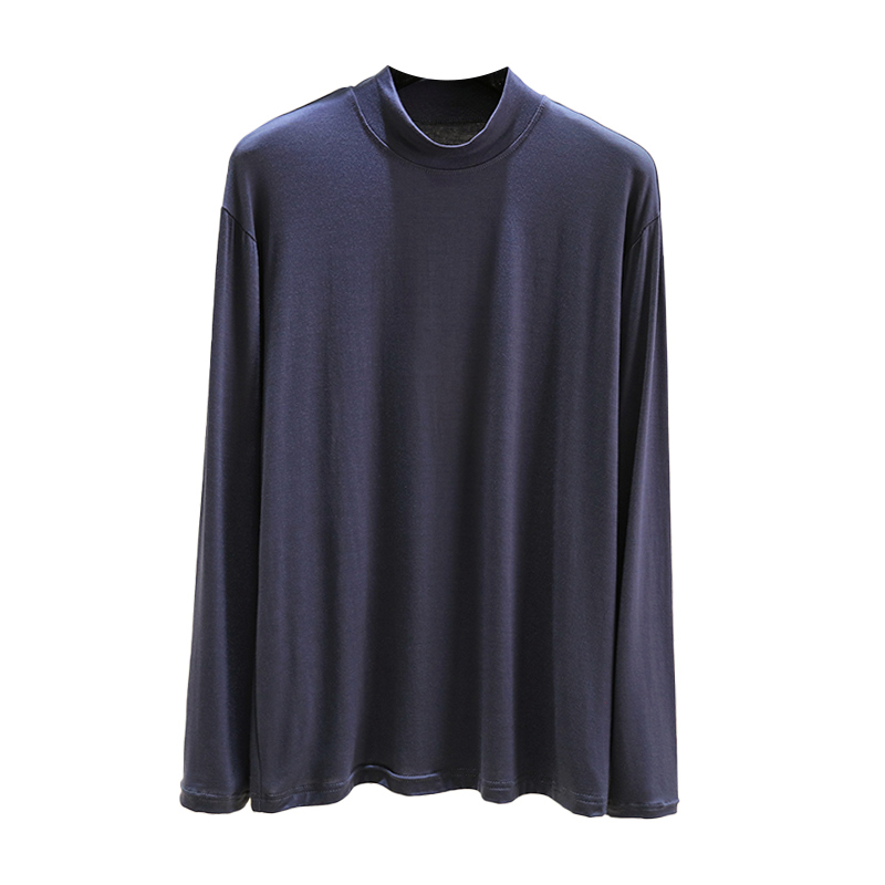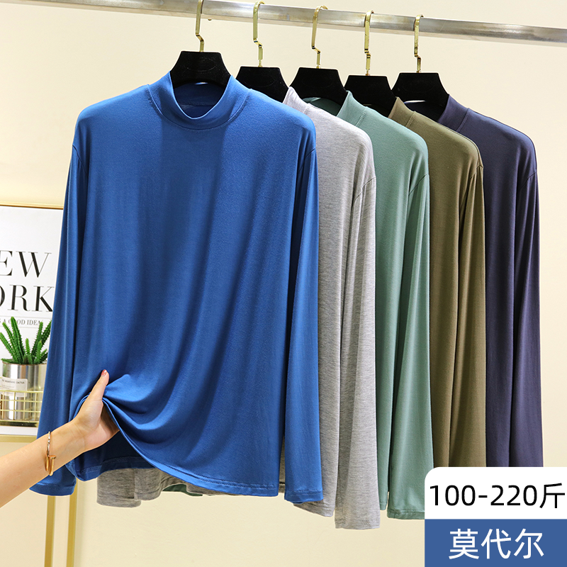 男士半高领长袖T恤衫春秋内穿大码纯色打底衫修身薄款莫代尔秋衣