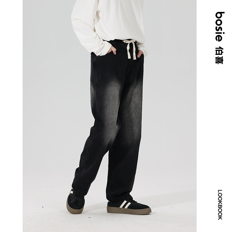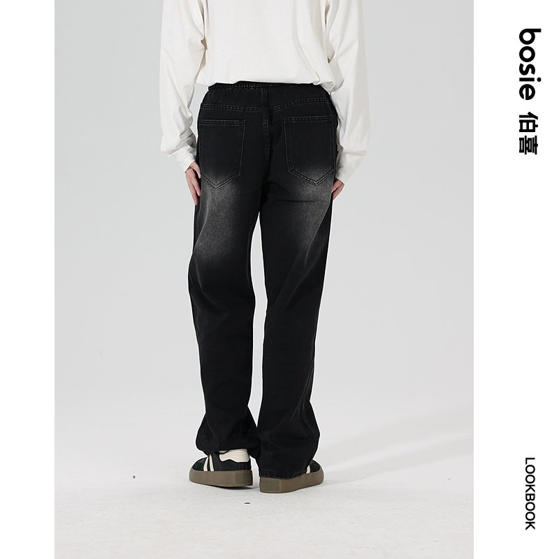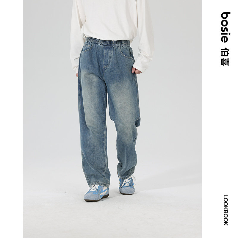 bosie伯喜2025年秋季新款水洗复古牛仔裤男情侣可收腰设计裤子潮