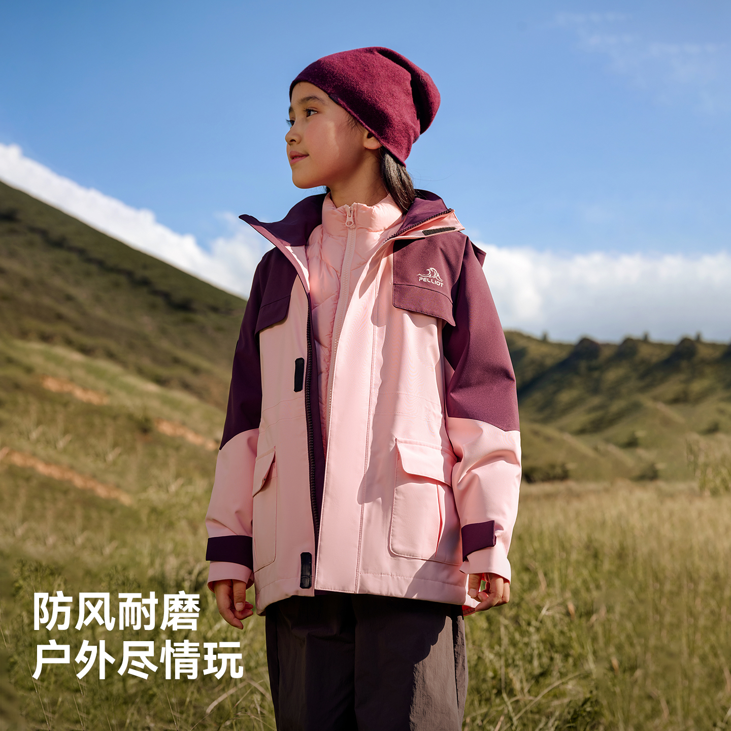 伯希和儿童三合一冲锋衣可拆卸鹅绒650蓬内胆男女童防风防水外套