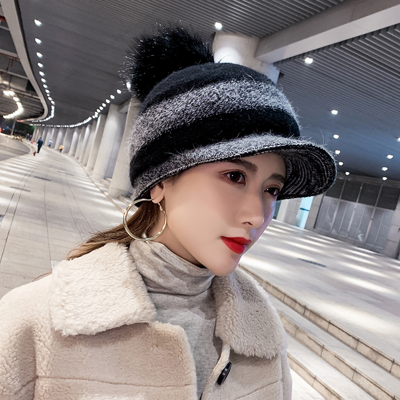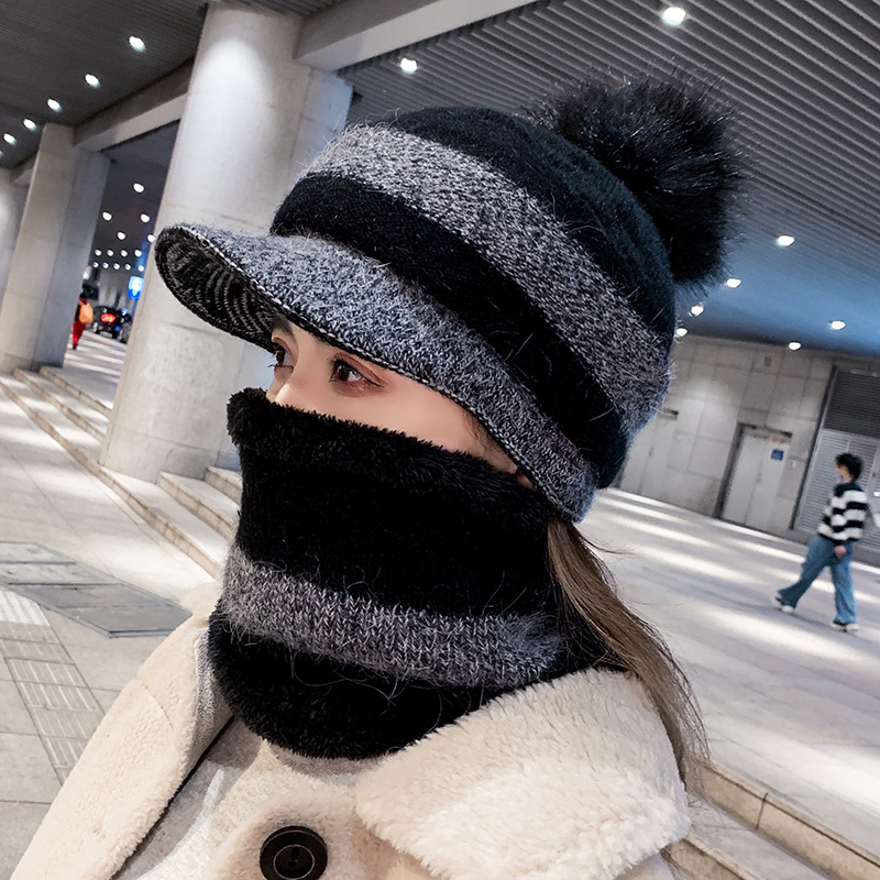 帽子女秋冬韩版潮护颈围脖针织骑车帽保暖时尚百搭加绒毛线鸭舌帽