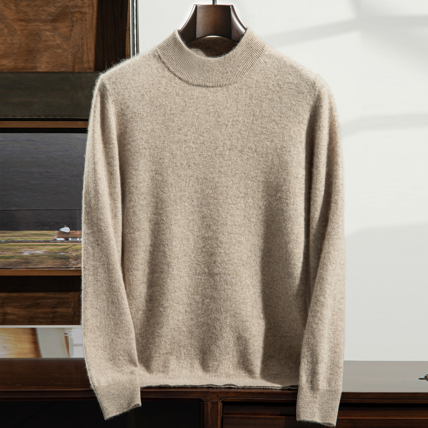 秋冬新款半高领内搭山羊绒衫男士宽松套头保暖毛衣新款针织衫上衣
