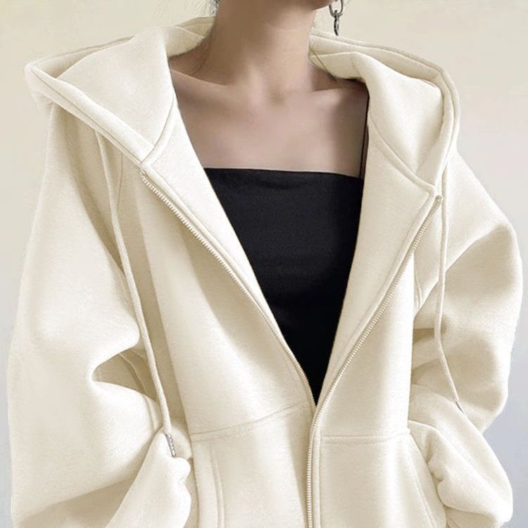 连帽秋冬宽松慵懒风加绒开衫卫衣