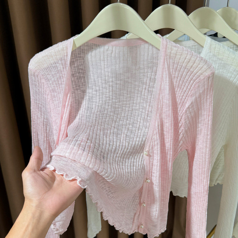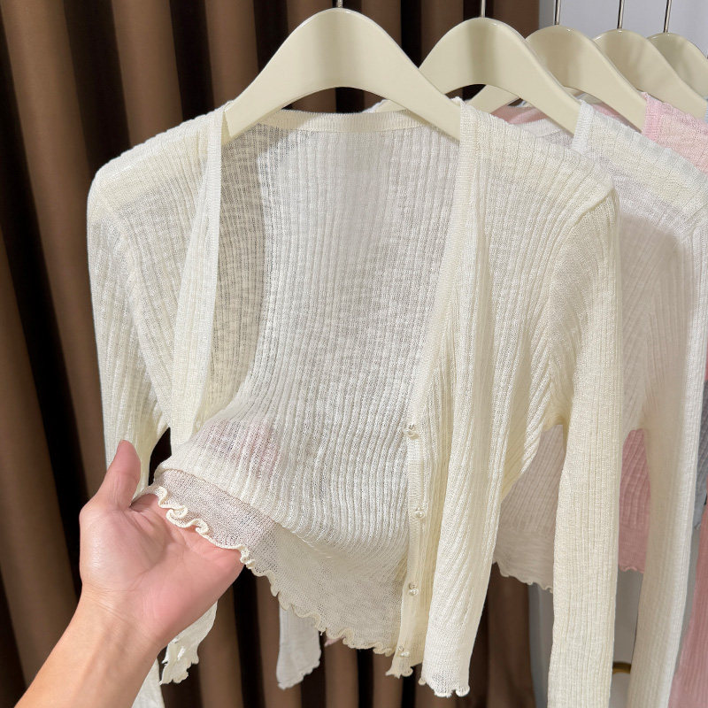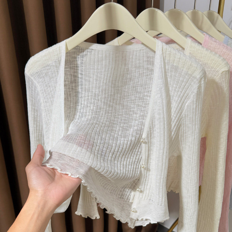 蓝色冰丝针织开衫女夏季防晒薄款罩衫吊带连衣裙披肩高级感小外搭