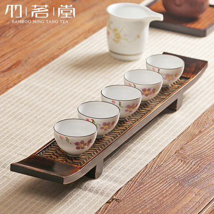 竹制干泡台茶盘 竹编茶杯架子壶承杯托杯架 功夫茶具实木茶道配件