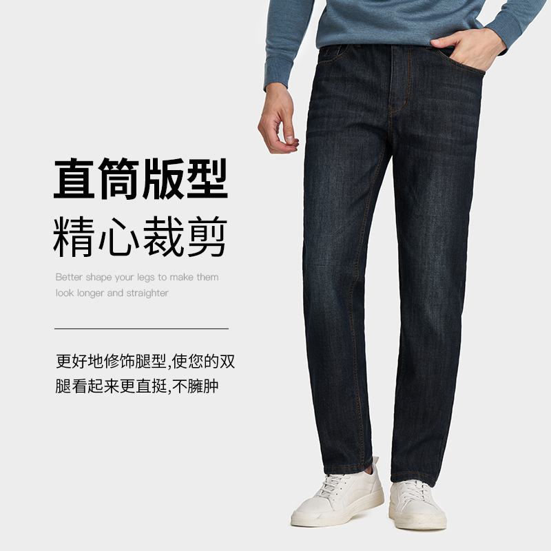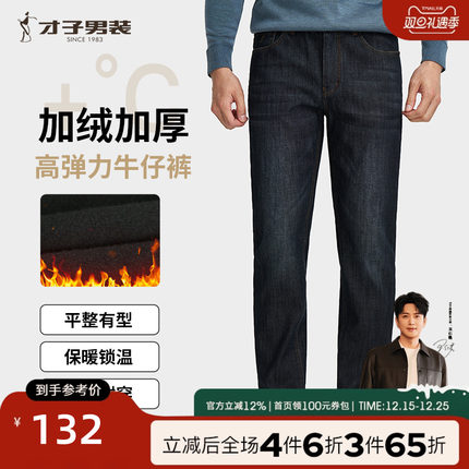 才子男装加绒加厚牛仔裤男2025秋冬新款保暖修身直筒休闲高端裤子