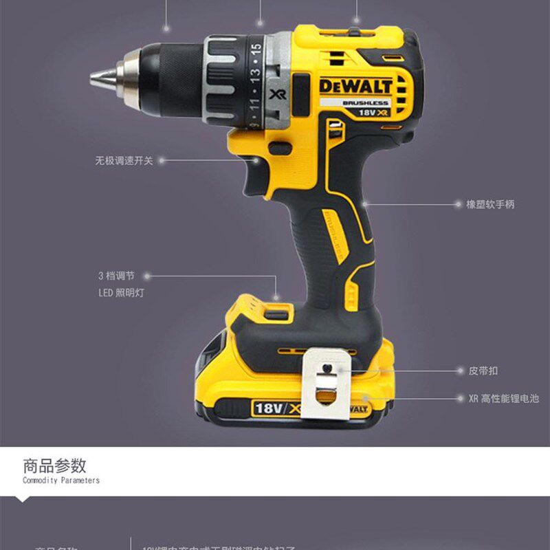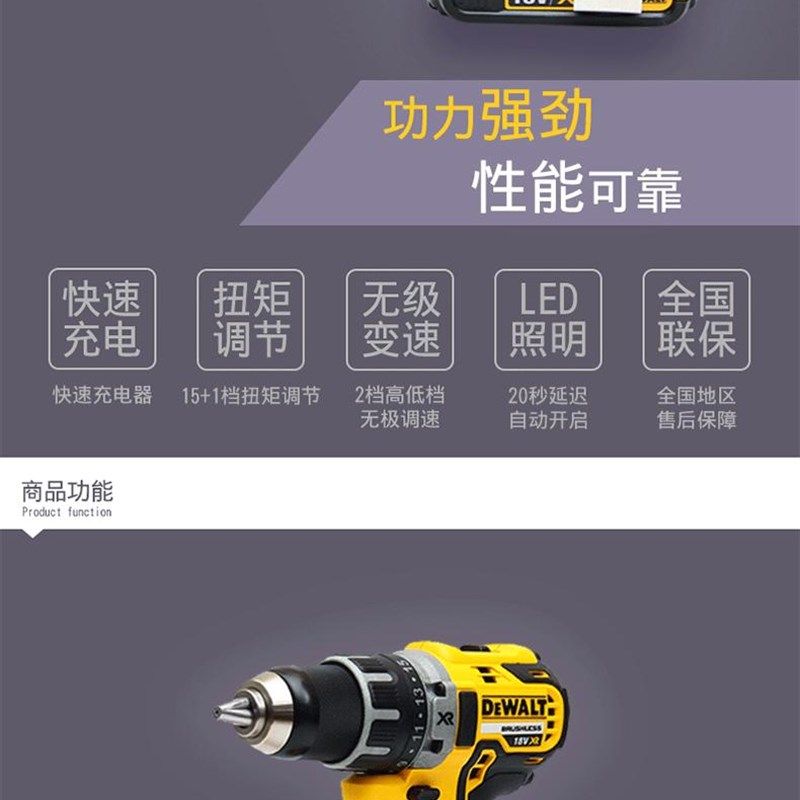 得伟无刷电钻DCD801充电钻锂电无线手枪钻DCD800电动螺丝刀DCD791
