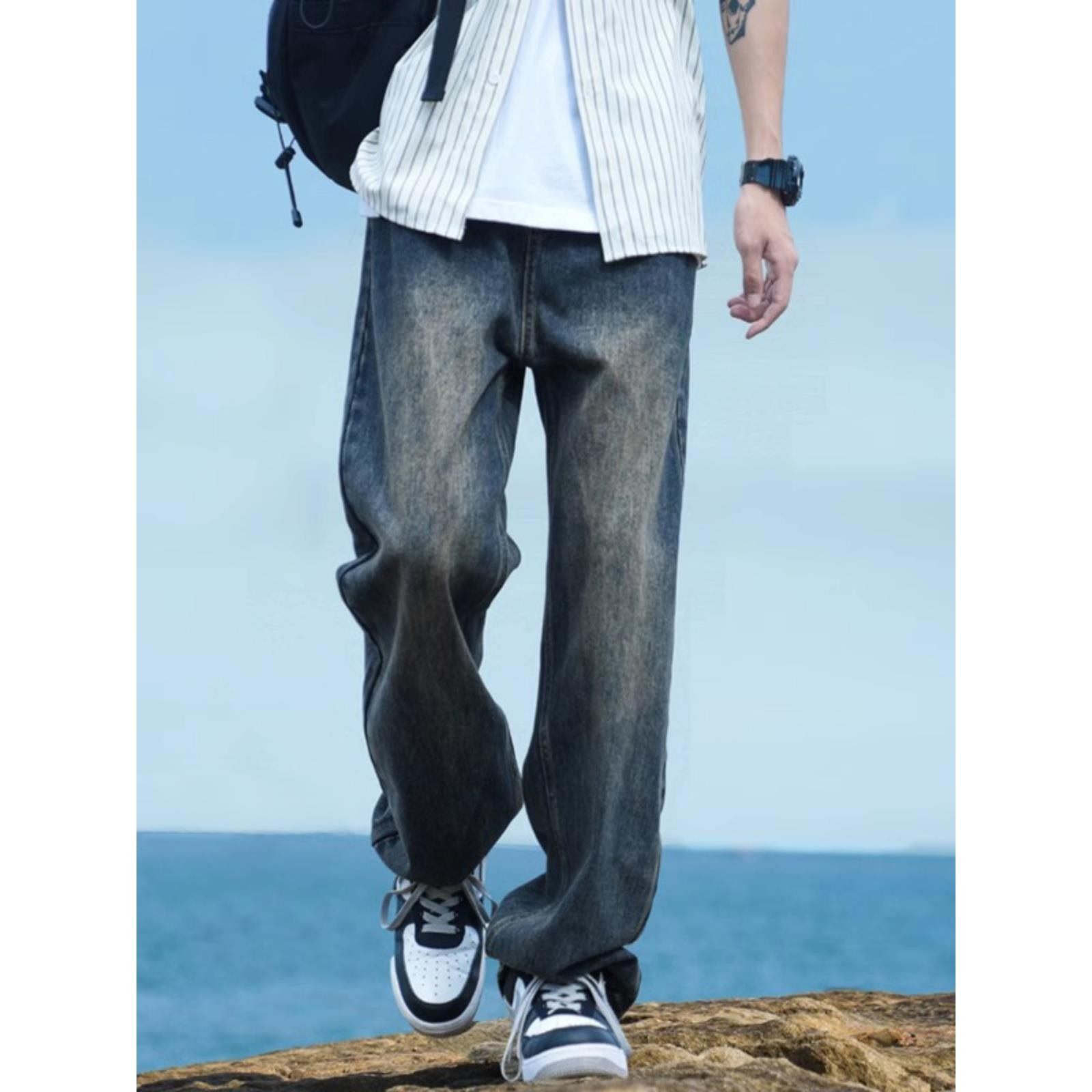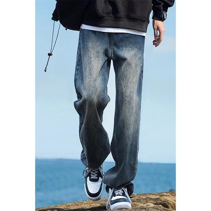 190高个子加长裤子男秋季宽松直筒加长牛仔裤青少年阔腿休闲长裤