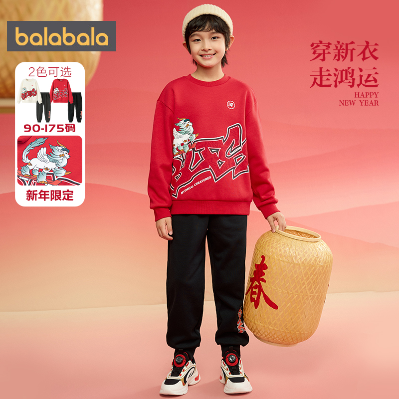 巴拉巴拉男童运动套装中大童加绒红色拜年服秋冬新款童装儿童卫衣